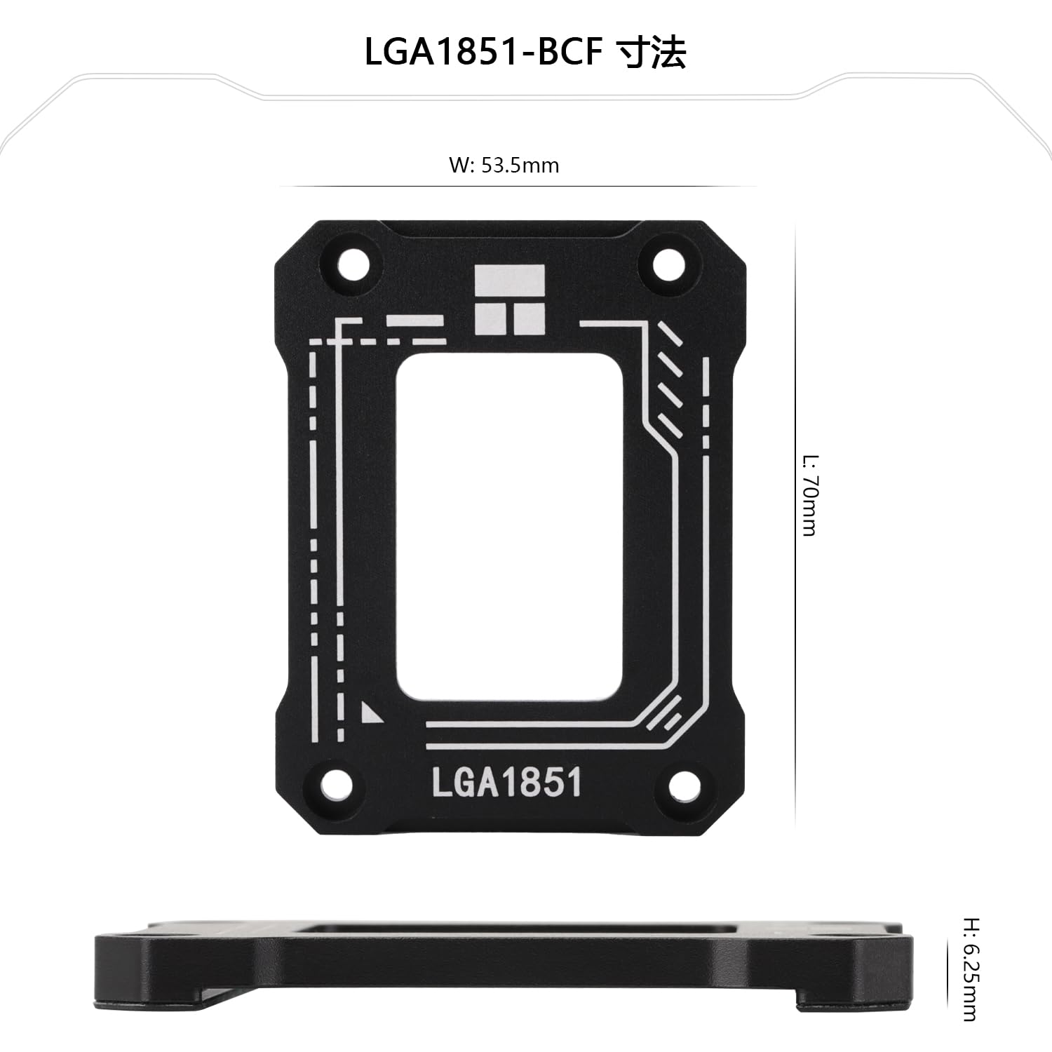 [仕様] 53.5x70x6.25mm、材質:AL6063-T5、L字型ドライバーと4本のネジ付き、同時に取り付けが簡単で、CPUに熱を放散するため、適切に設計されたサイズはCPUにフィットし、ラジエーターの重量を支え、CPUが曲がるのを防ぎ、Blackバージョン