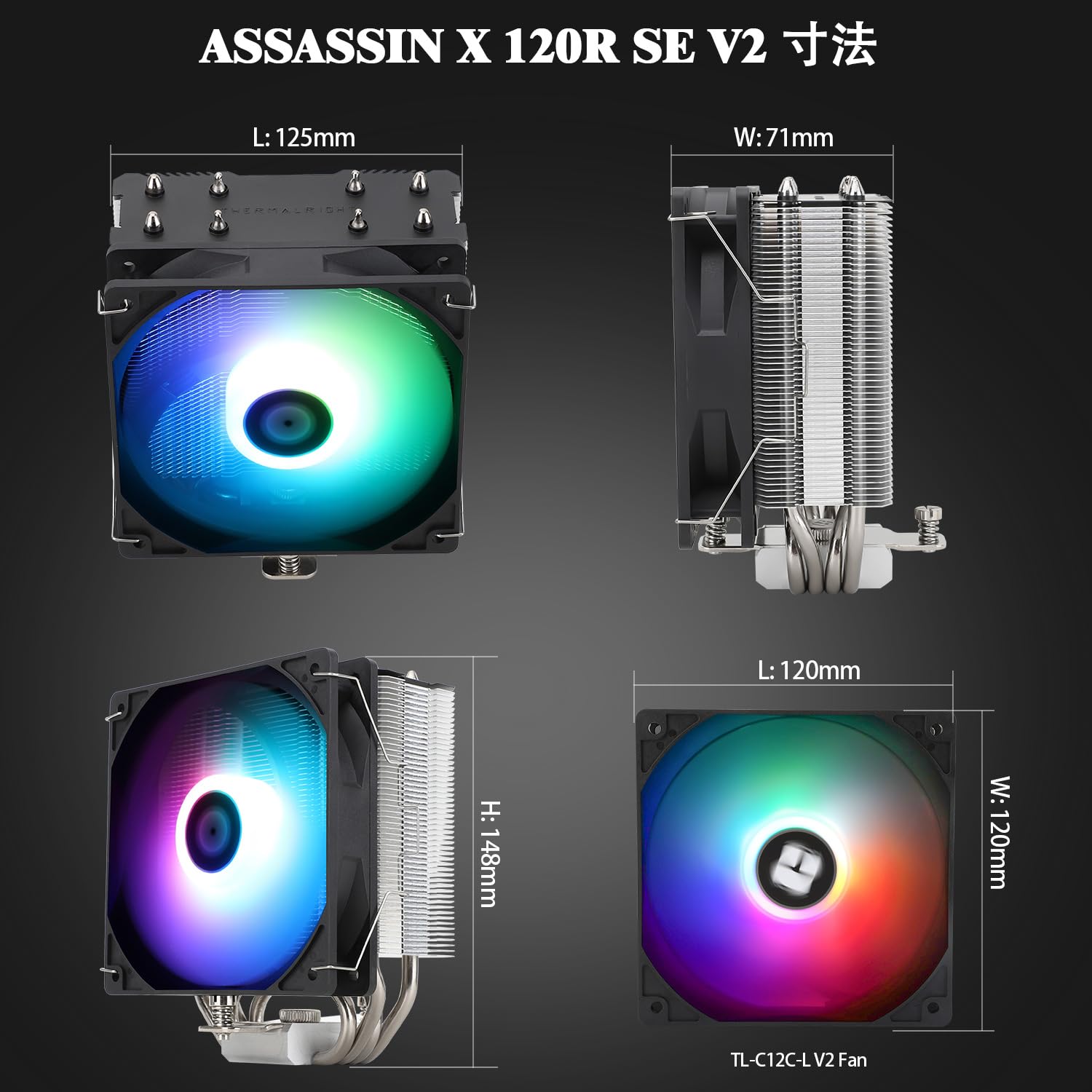 Thermalright Assassin X 120R SE V2 CPUエアクーラ、4本のヒートパイプ、148 MM高、TL-C 12 C-L V2 PWMファンCPUクーラ、AMD AM4 AM5/Intel LGA 1700/115/1151/1200、LGA 17 XX冷却に適している、ランプ色固定