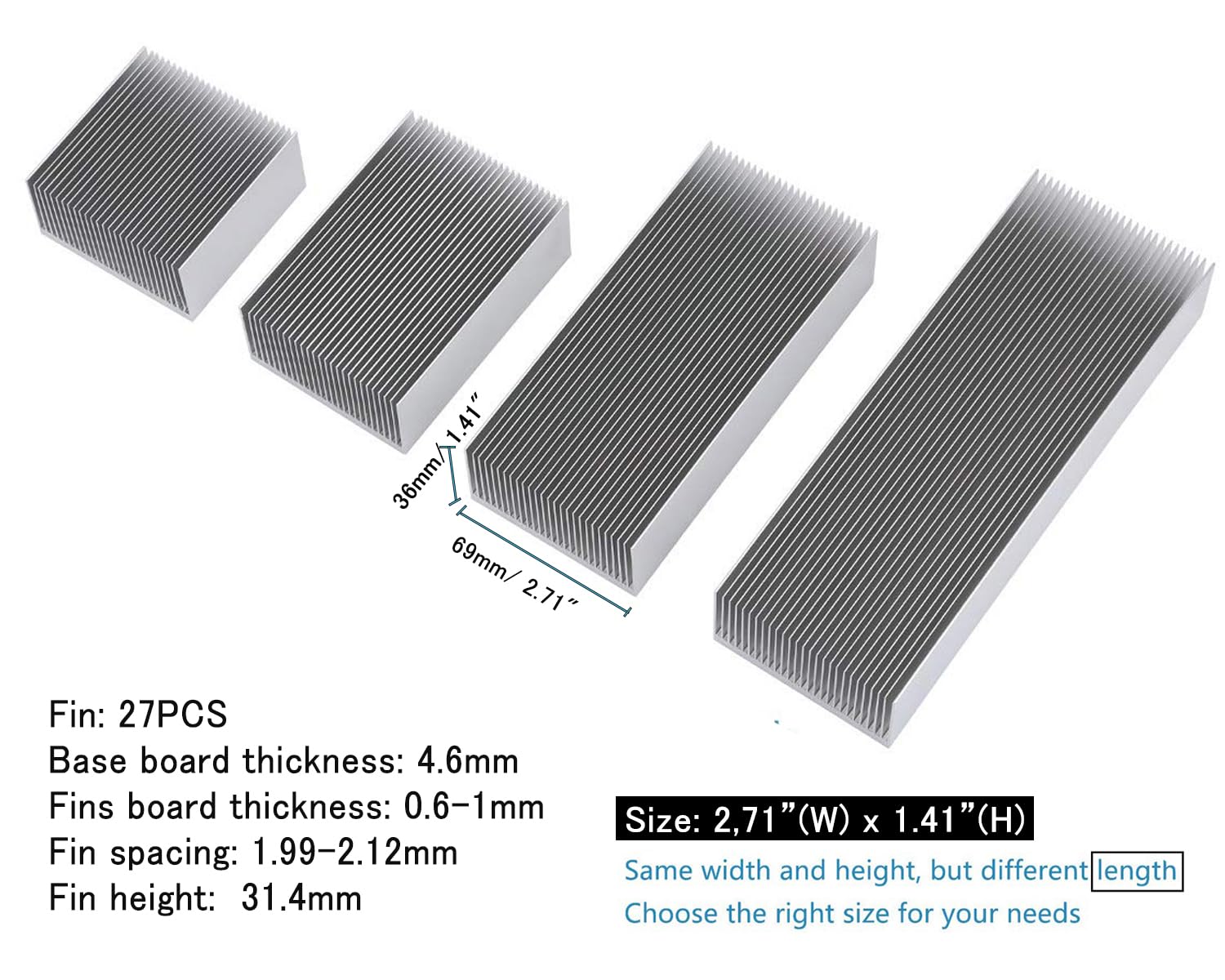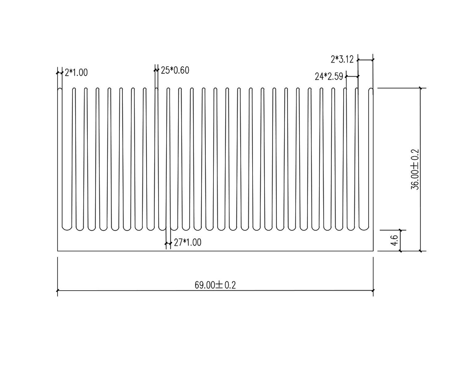 ヒートシンク アルミニウム 冷却 フィン 大型 クーラー PC HHD PCB パワートランジスタに適用 (120 x 69 x 36mm,シルバー)