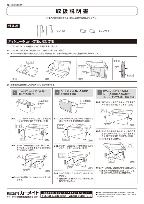 【シートバックポケット用フックを付属】シートバックポケットの内側・外側に取り付ける際に便利なフックを付属。ポケットの内側に装着する場合は、製品をフックで引っ掛けることで、ポケットの奥に製品が落ちるのを防ぎ、ティシューを取り出しやすくします。