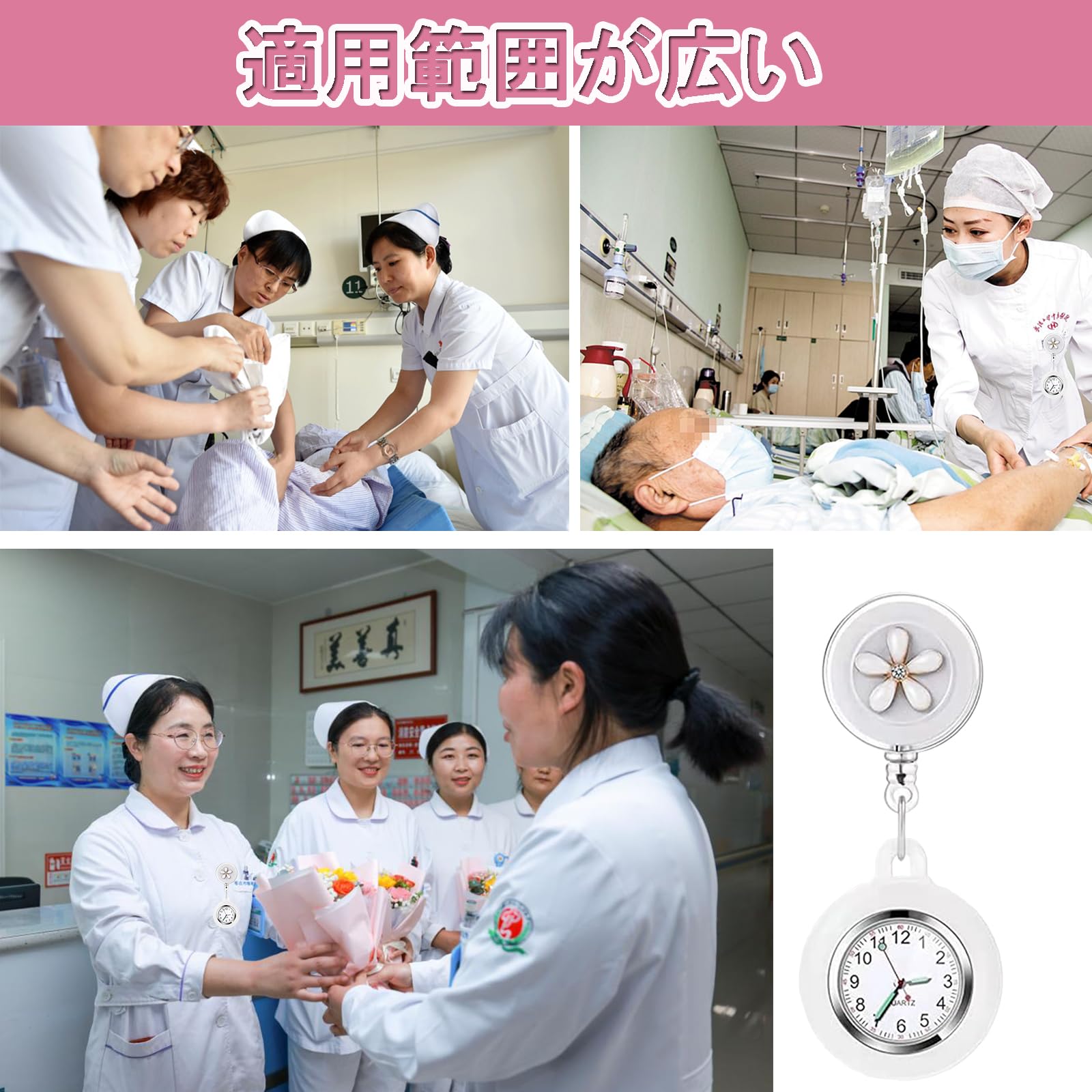 ナースウォッチ 数字 懐中時計 伸び縮み可能 クリップ式 見やすい ポケットウォッチ 看護師用 男女兼用 (ホワイト)