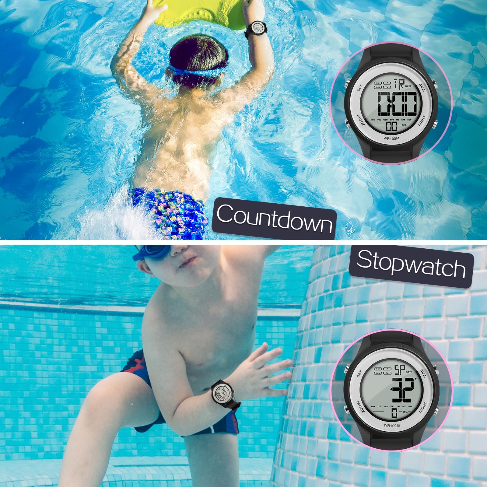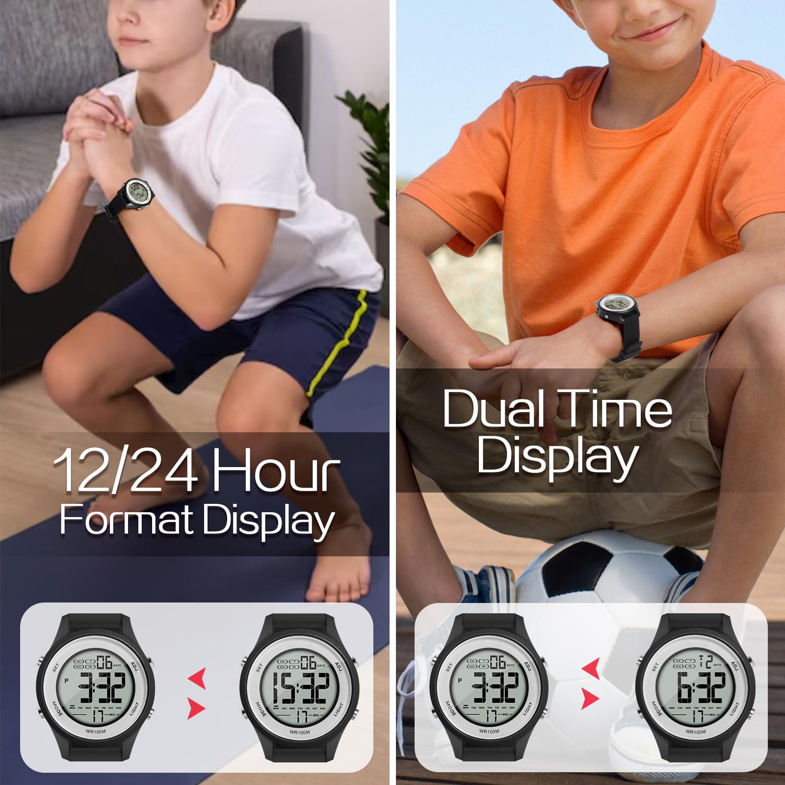 【特価】少年ボーイズスポーツ腕時計水泳潜水用100メートル防水と目覚まし時計、クロノグラフ、タイマー カウント ダウン、デュアル タイム、カレンダー、12 および 24 時間形式切り替え可能な複数の機能 | GIGATERA