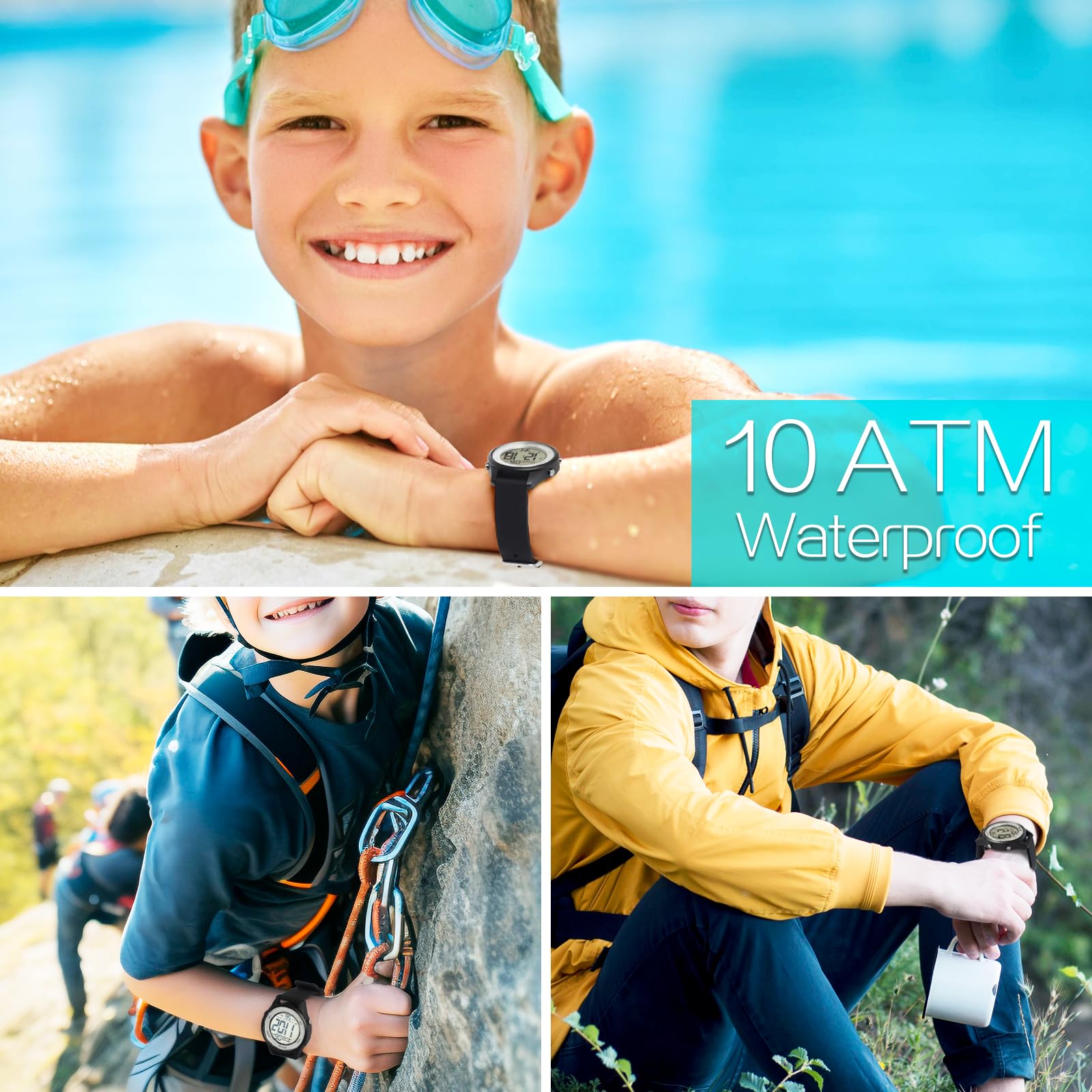 -この時計の防水レベルは10ATM防水に達しており、水深100メートル(330ft)までの通常の作業が可能です。水泳、ダイビング、スノーケリング、サーフィン、ボート、ウォータースキーなどの水のアクティビティでの着用に適しているだけでなく、ジョギング、ハイキング、登山、サイクリングなどの日常生活やアウトドアスポーツでの着用にも適しています。