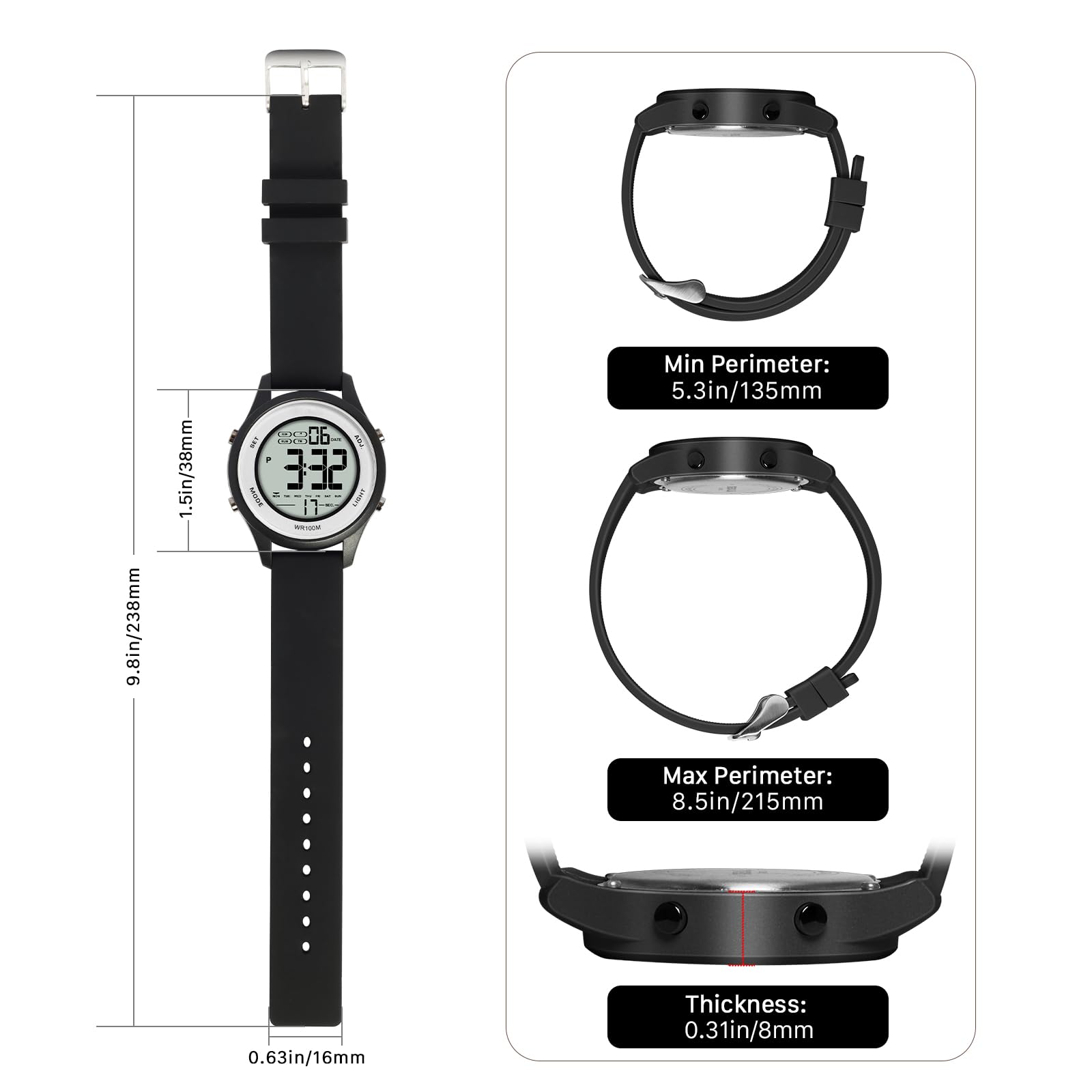最小腕周り: 135mm/5.3インチ