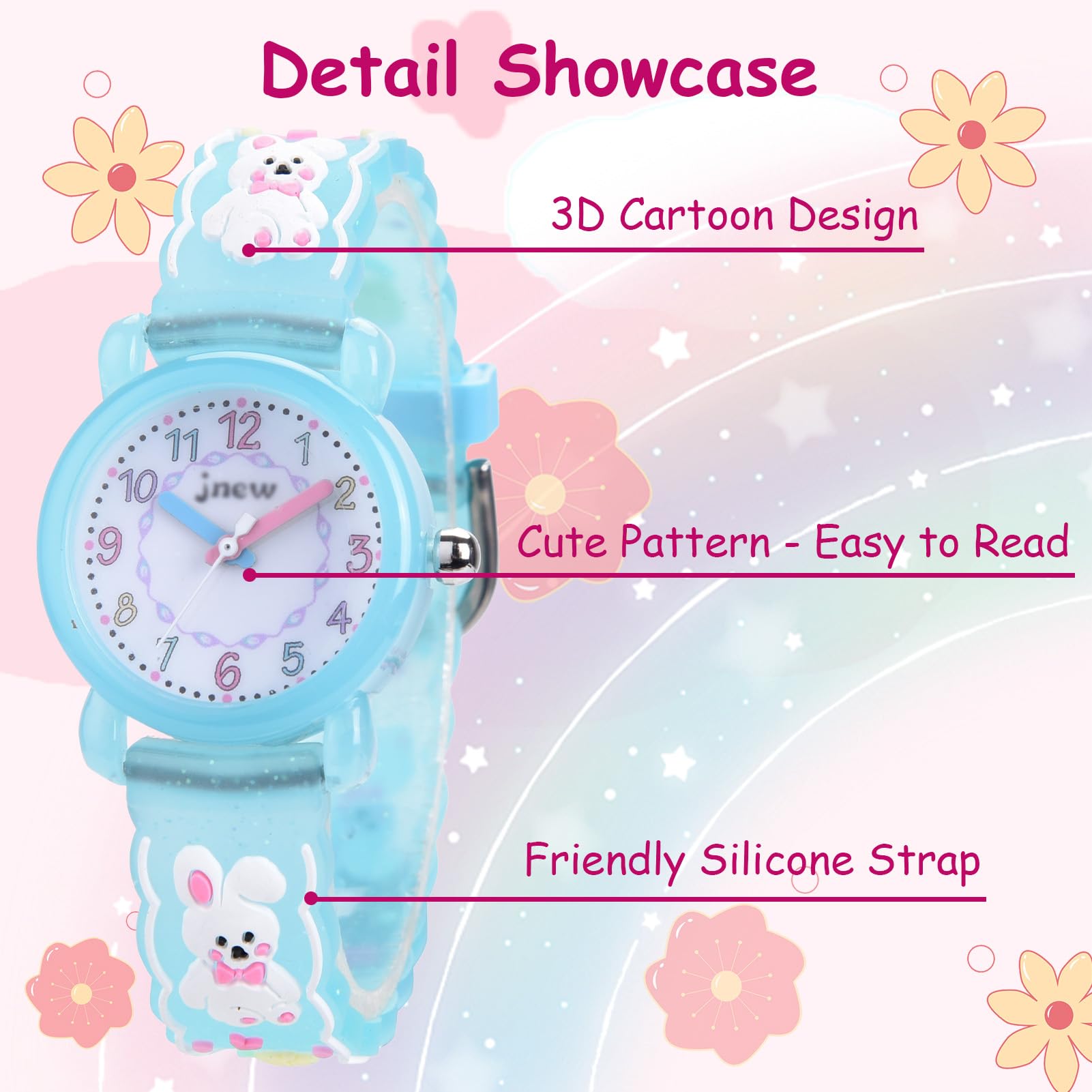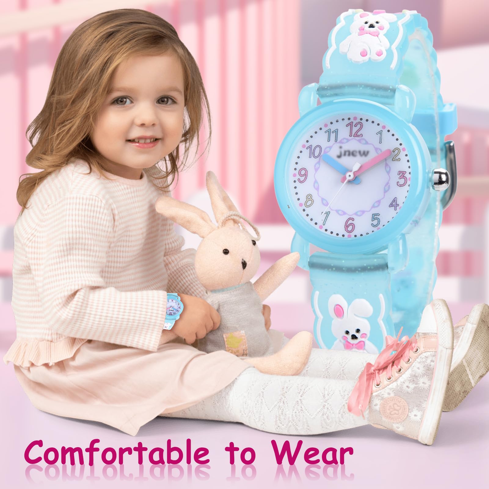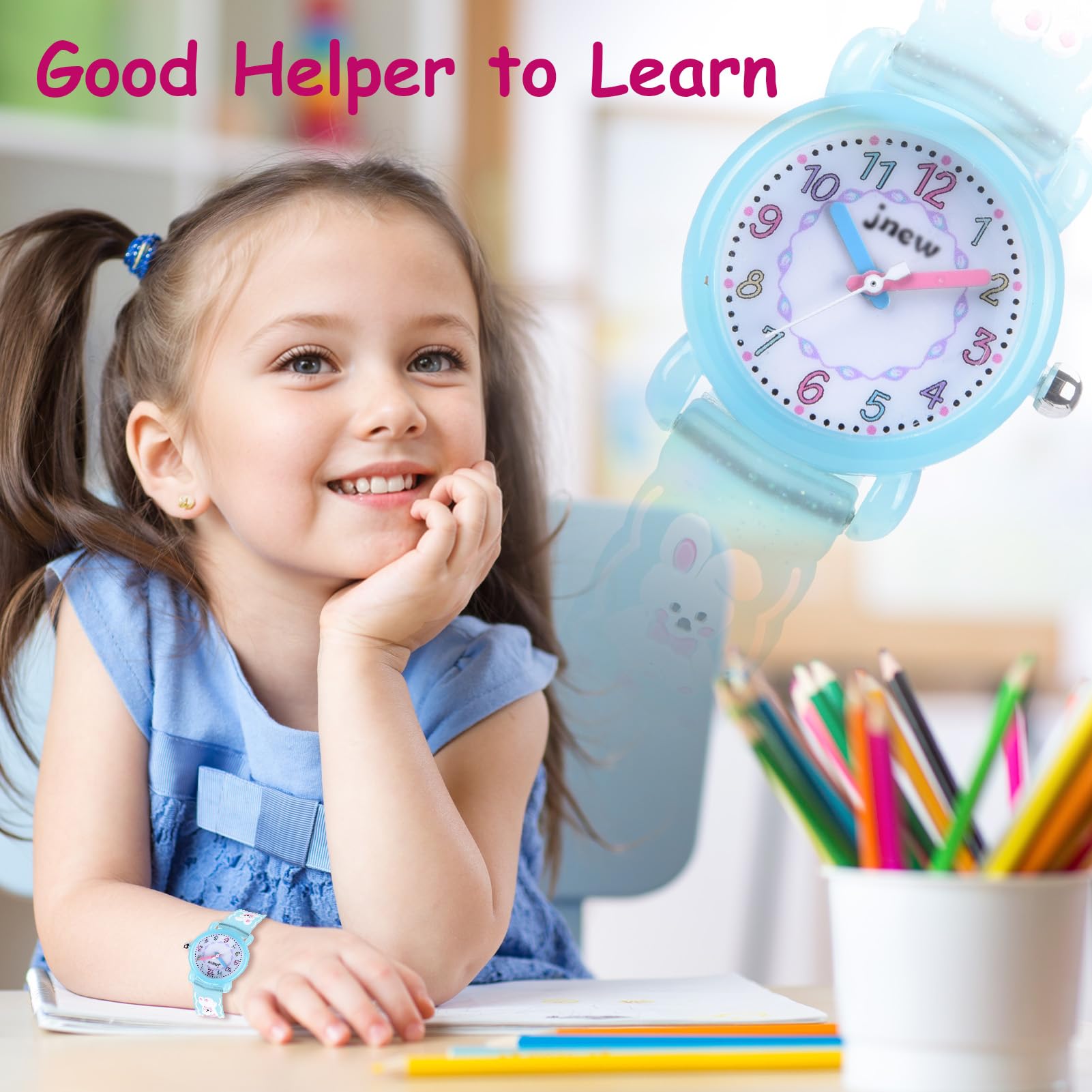 【時間概念の涵養】視認性の高いアラビア数字インデックスで時間を読みやすいです。時計を見て遊んだり、勉強することで、時間を守る習慣が身につきます。