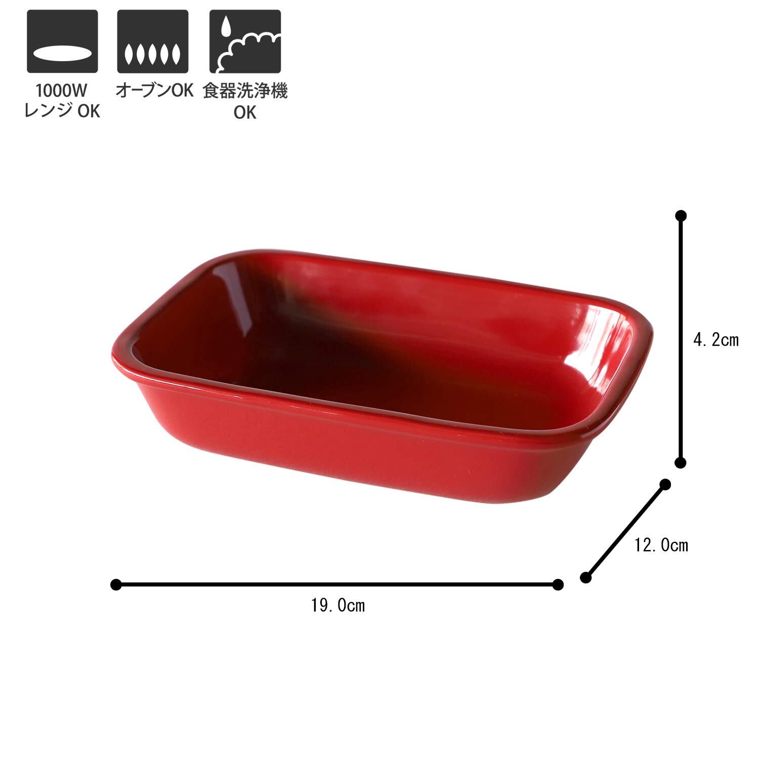 TAMAKI HINATA ヒナタ グラタン皿 レクタングル レッド 19×13×4.2cm 電子レンジ・食洗機・オーブン対応 T-932056