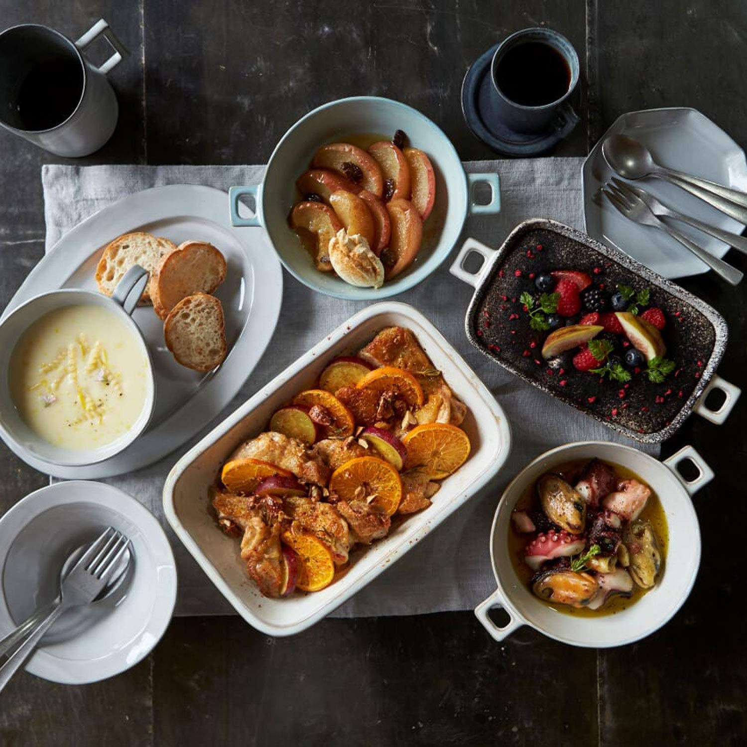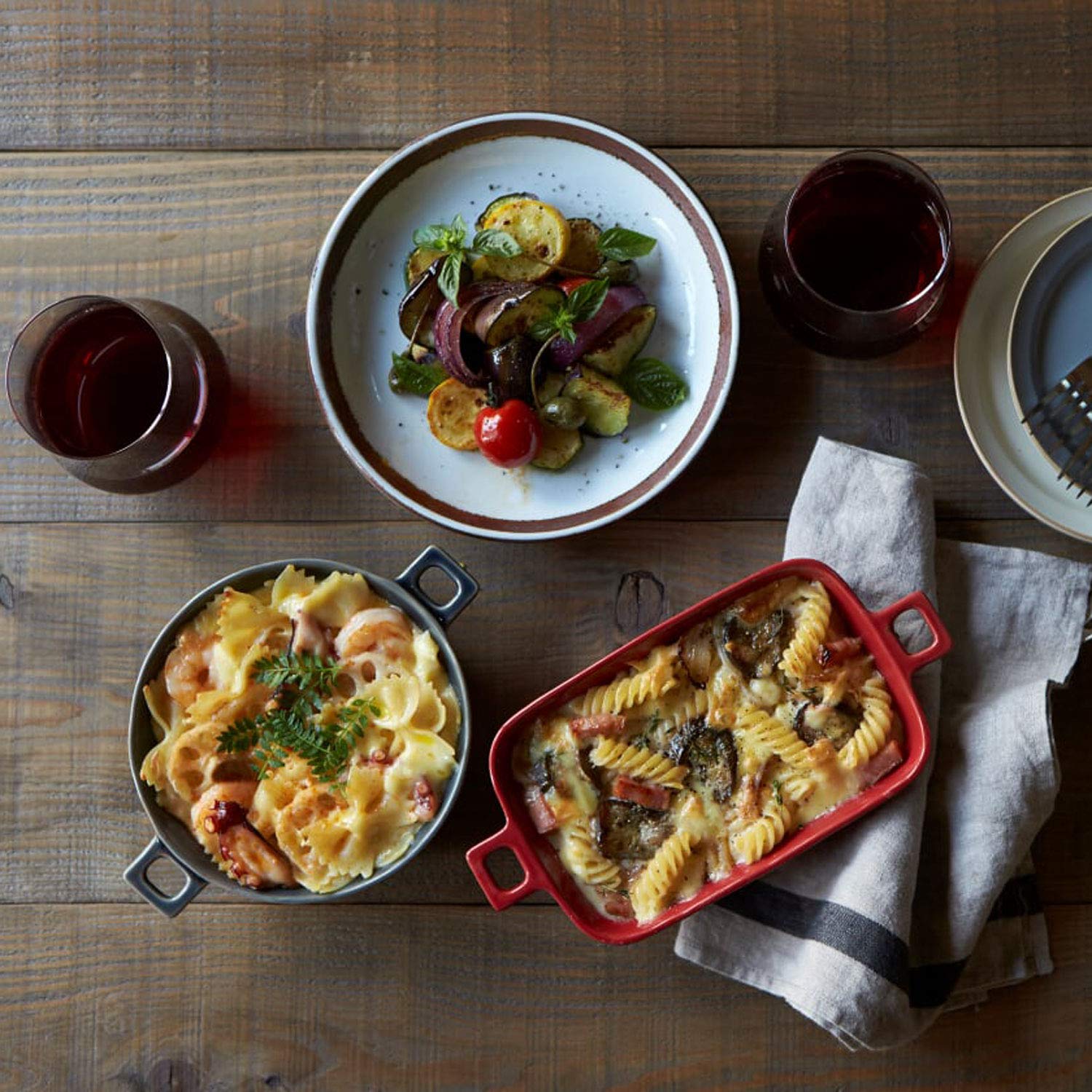 出来たてアツアツの料理をそのまま食卓に出せる耐熱皿。 グラタンはもちろん、ドリアやラザニアまで作れるサイズまで揃えました。 無駄のないデザインとくすみカラーが上品なシリーズです。