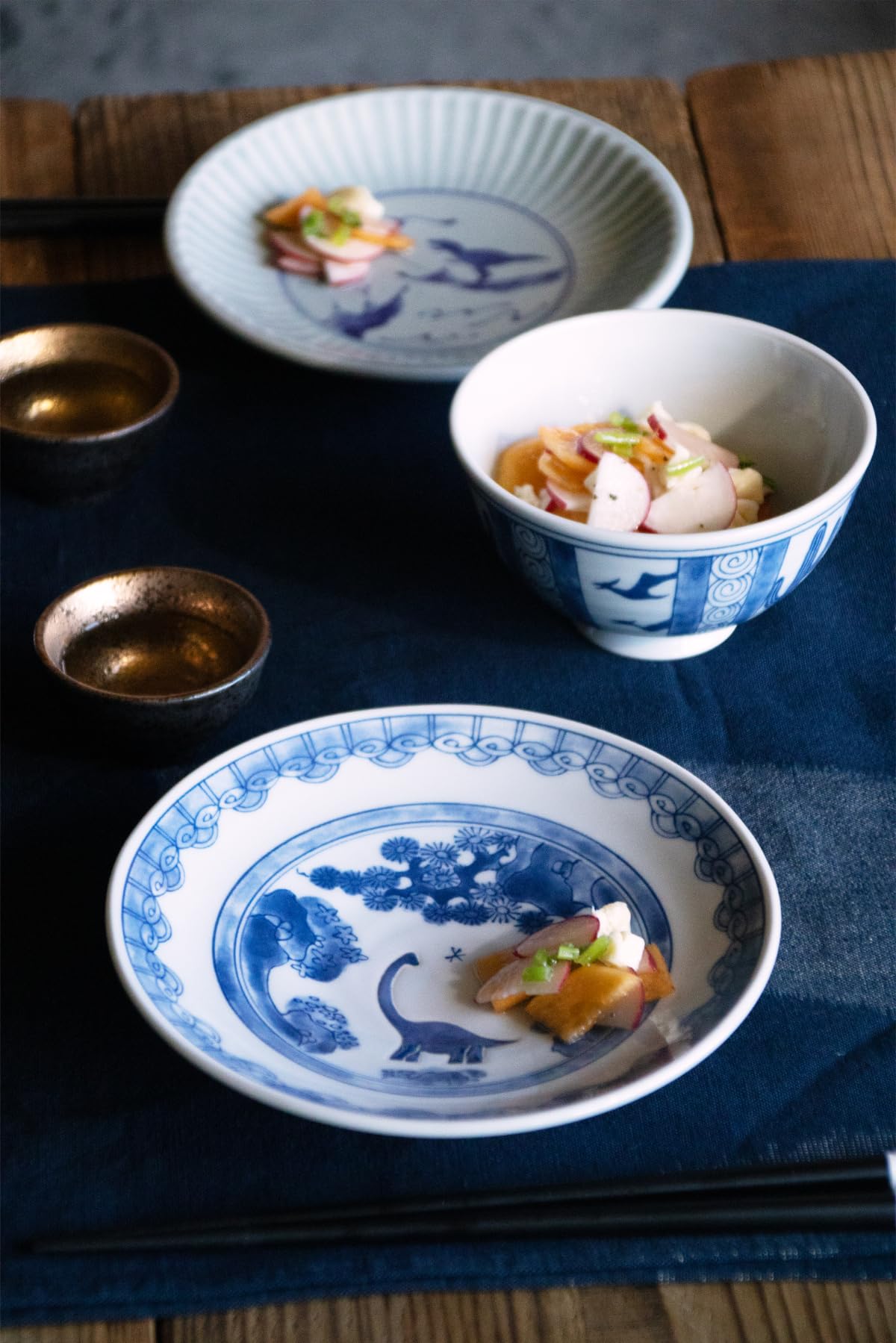 古伊万里をモチーフに描かれた柄が色鮮やかで食卓も華やかな印象に。