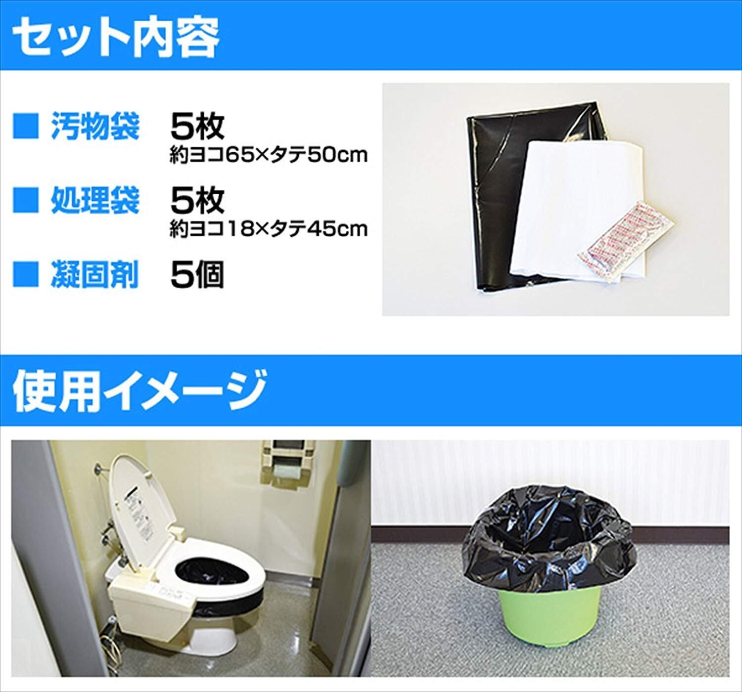 山善(YAMAZEN) 簡易トイレ 【日本製】 5回分 (凝固剤/汚物袋/処理袋) 携帯トイレ 災害用トイレ 防災 断水 介護 非常用 YKT-05