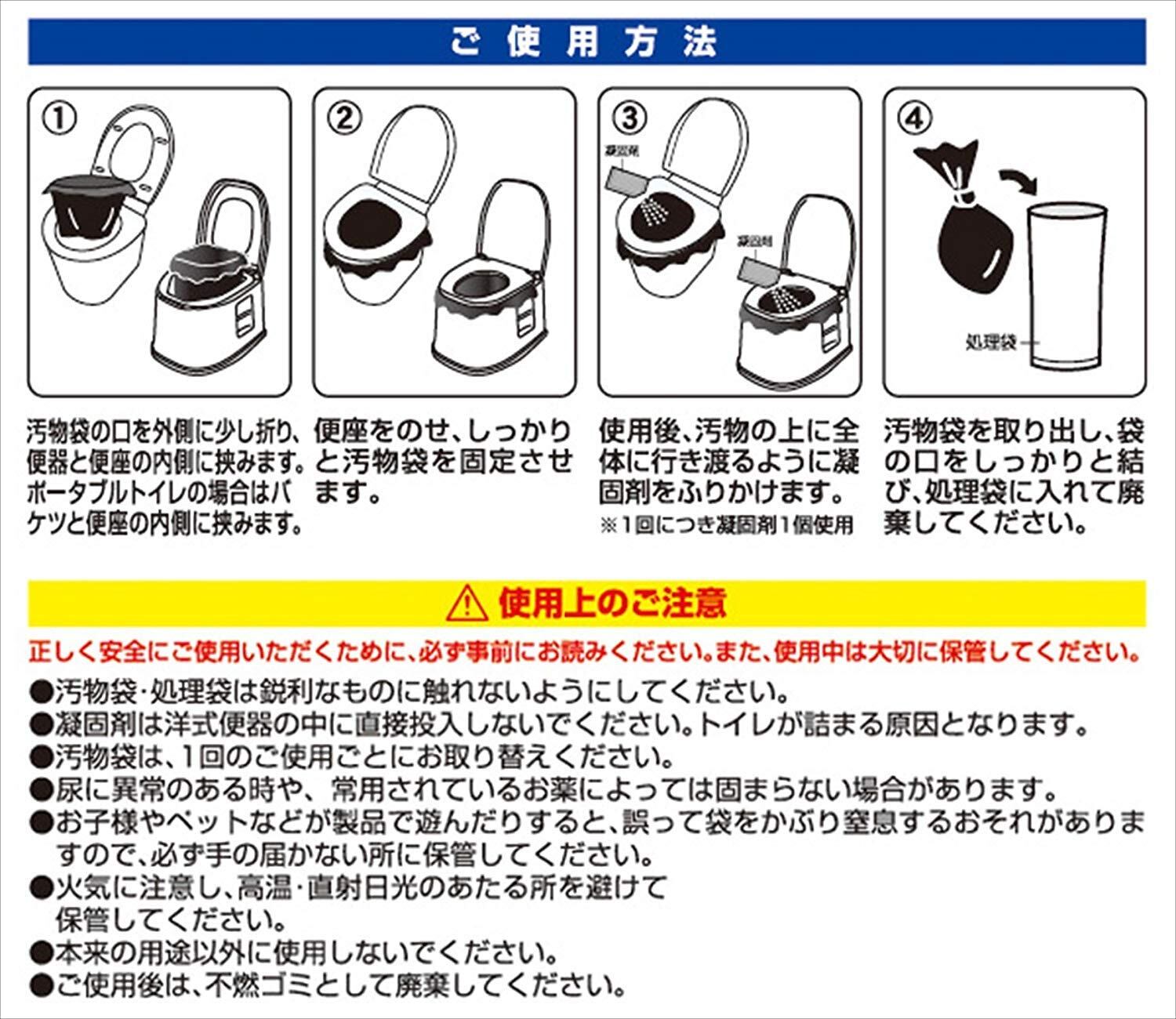 材質: 汚物袋、処理袋=ポリエチレン、凝固剤=高分子ポリマー・消臭剤・ウッドパウダー