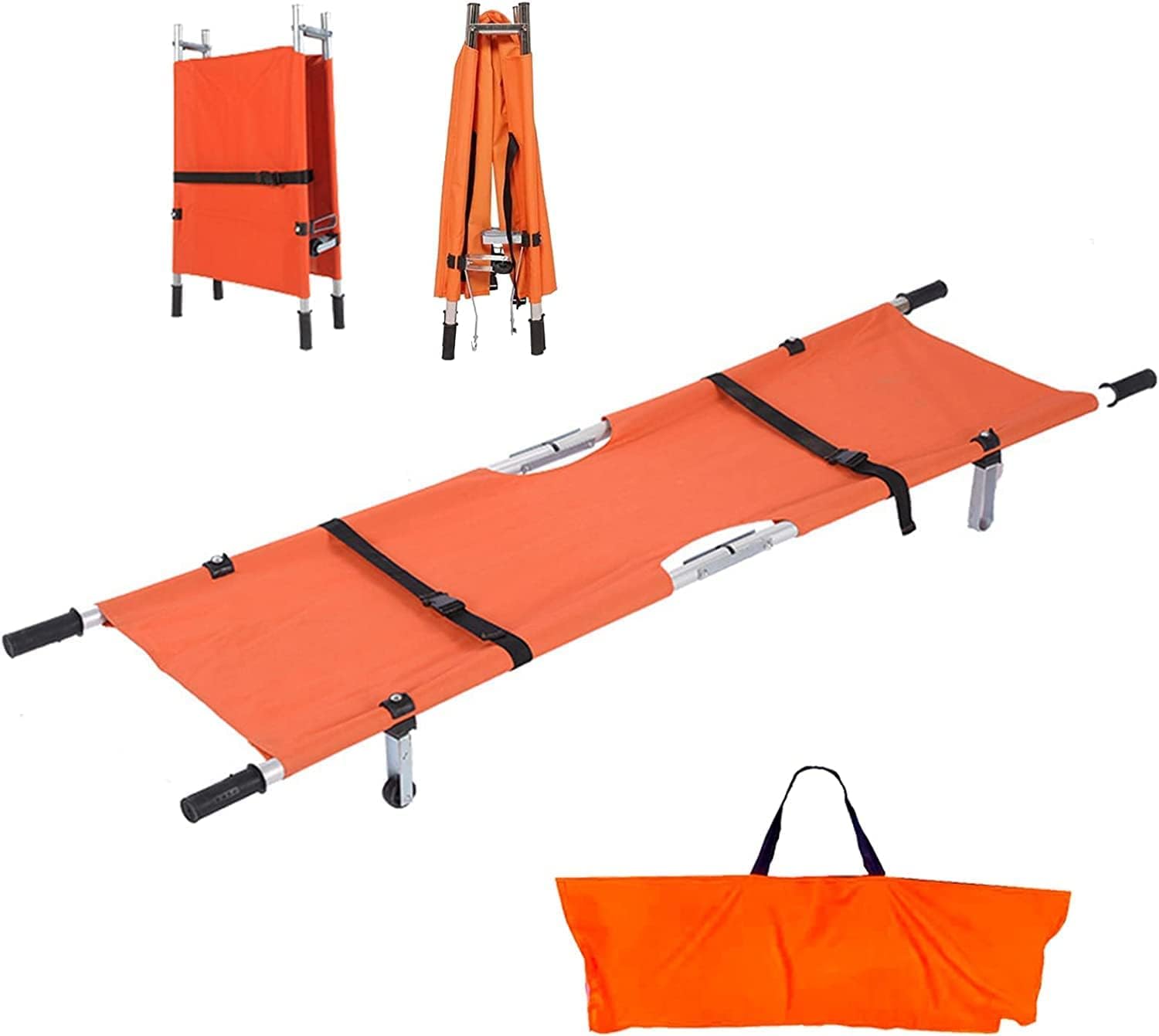 担架 2つ折り ストレッチャー ステンレス ステンレス 軽量 (オレンジ)