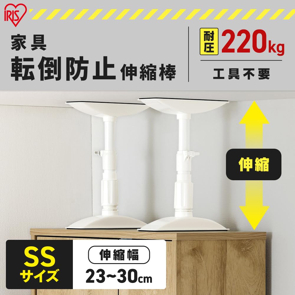 アイリスオーヤマ 家具転倒防止伸縮棒SSサイズ 防災グッズ KTB-23R ホワイト