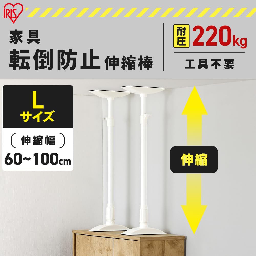 アイリスオーヤマ 家具転倒防止伸縮棒Lサイズ 防災グッズ KTB-60R ホワイト