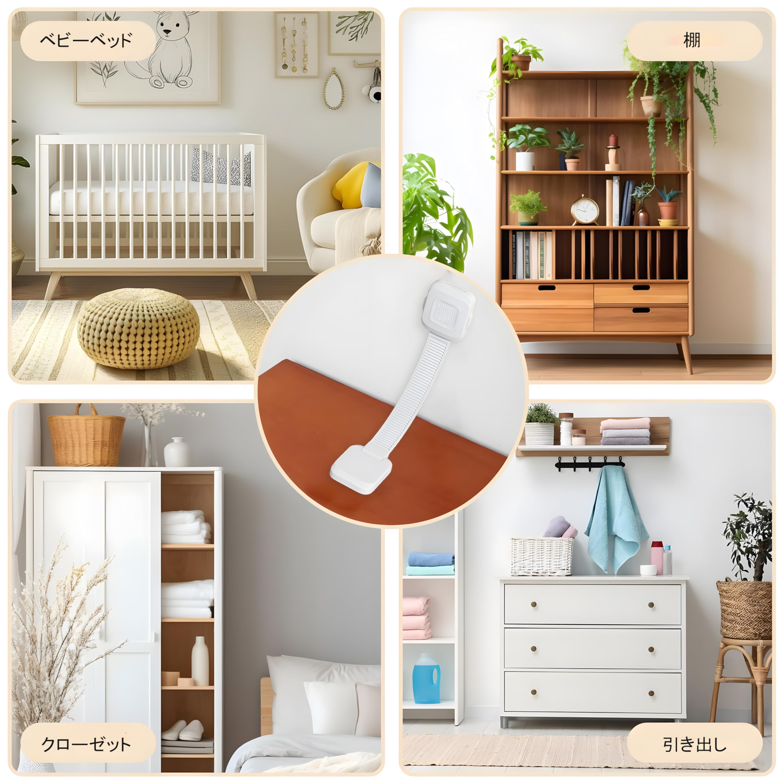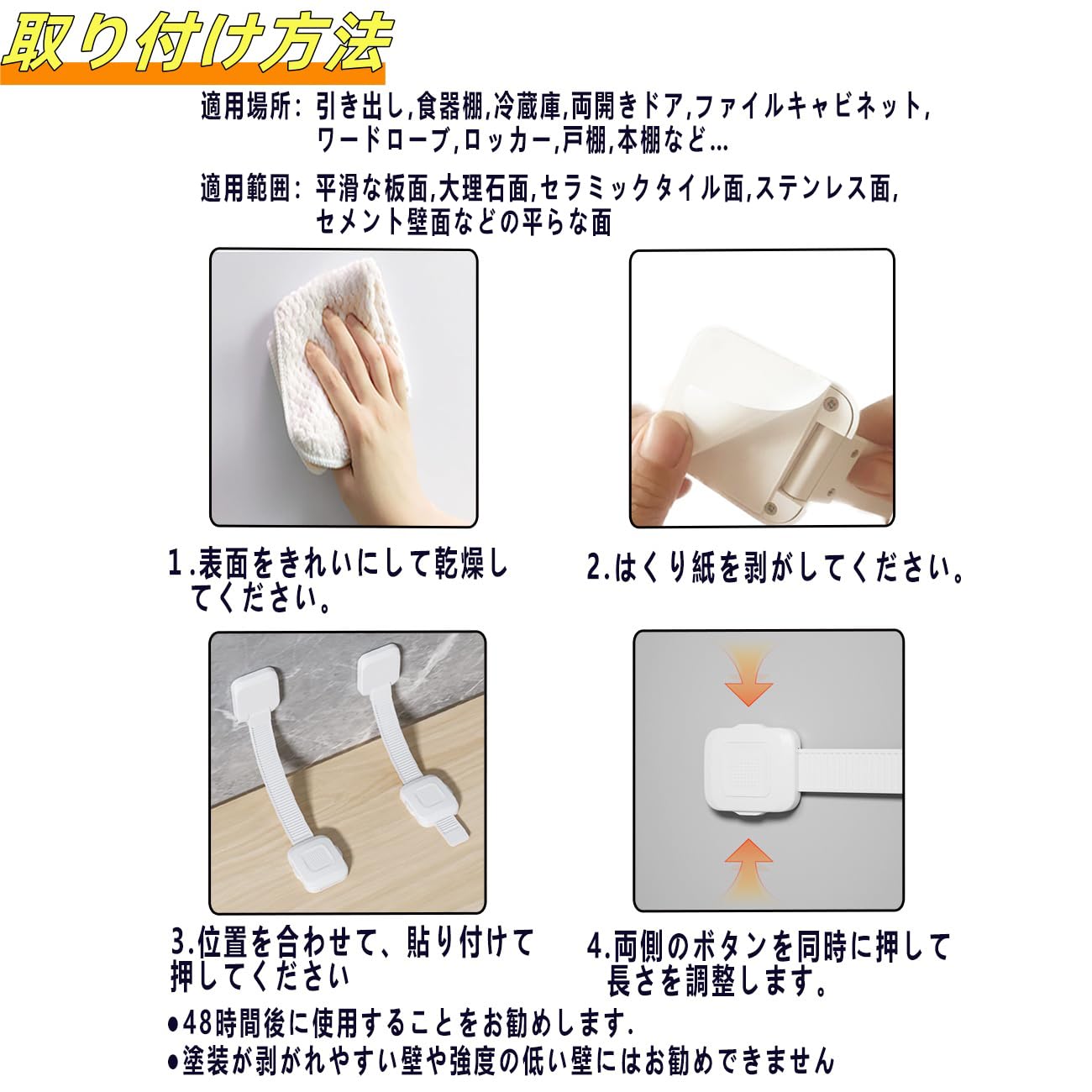 ?【幅広い適用範囲】冷蔵庫、キャビネット、ワードローブ、引き出し、両開きドア、本棚、雑多なラックなど転倒防止に適しています。基本的に平らなところであればどこでも設置可能です。凹凸のある壁紙や珪藻土壁などには使用できませんのでご注意ください。