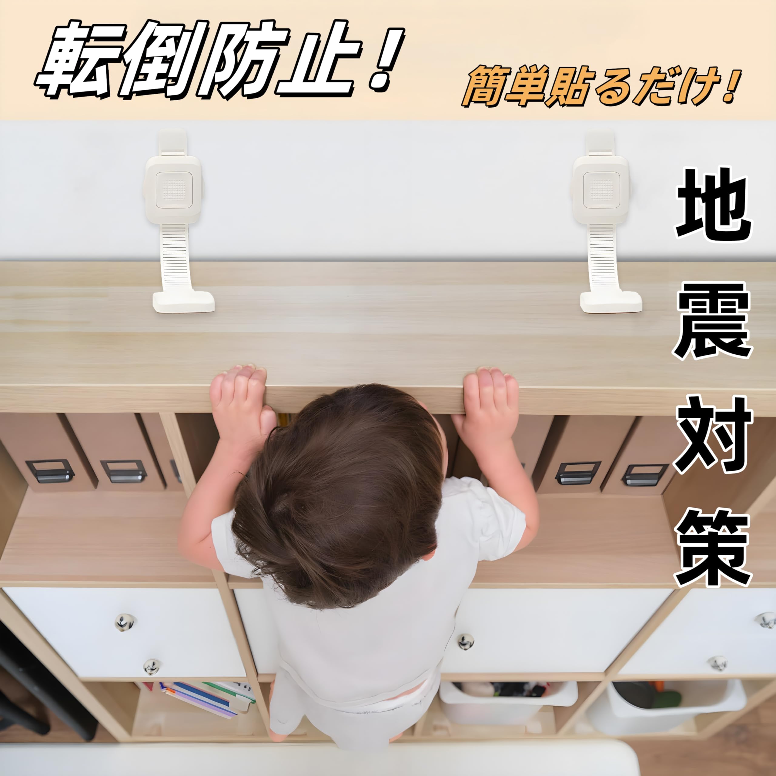 家具転倒防止 地震対策 ストッパー 取り付けは簡単 転倒防止 ベルト 穴あけ不要 長さ調整が可能 食器棚 本棚 家具 固定 耐震 ベルト 粘着 転倒防止器具 (ホワイト 2個入り)