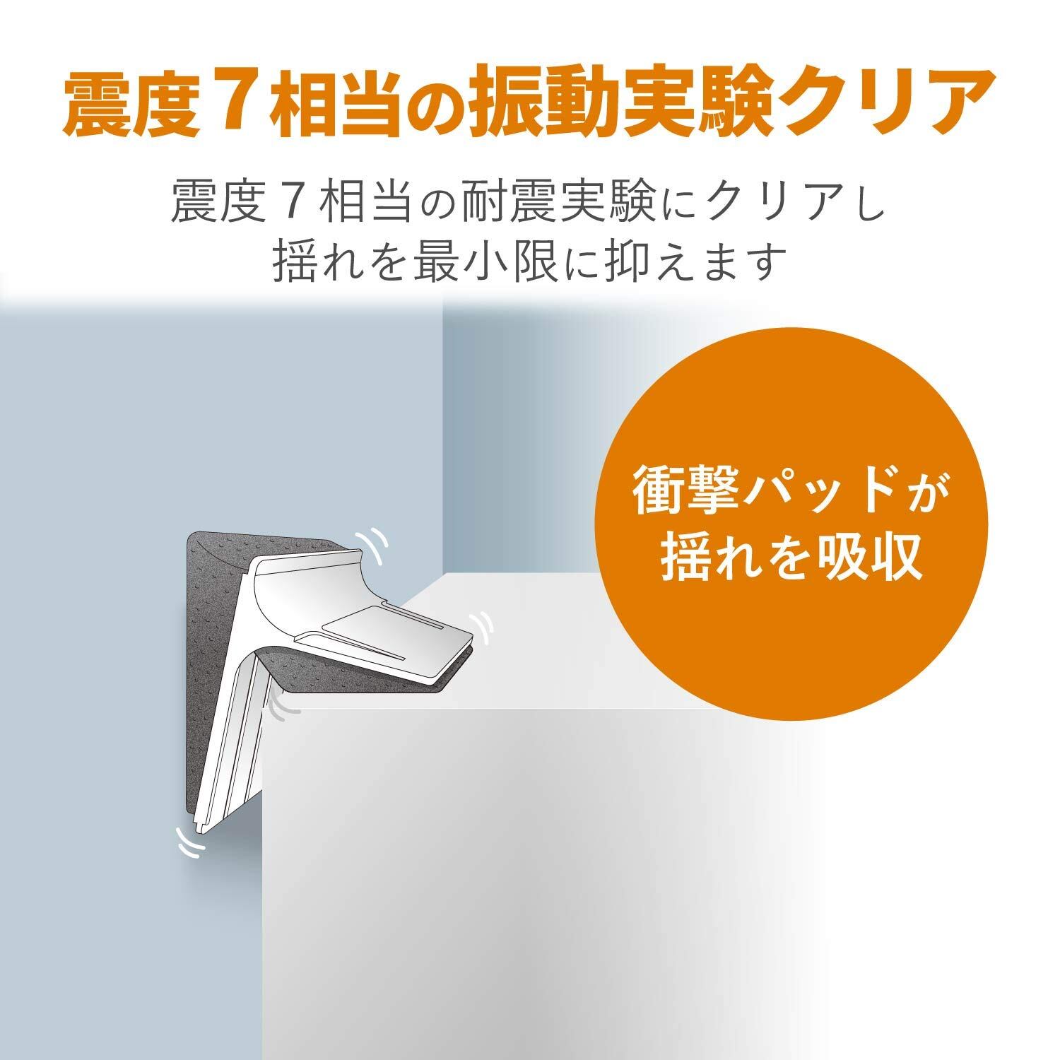 地震発生時に、衝撃吸収パッドが地震の揺れを吸収する。震度7対応の家具転倒防止器具“揺レタン