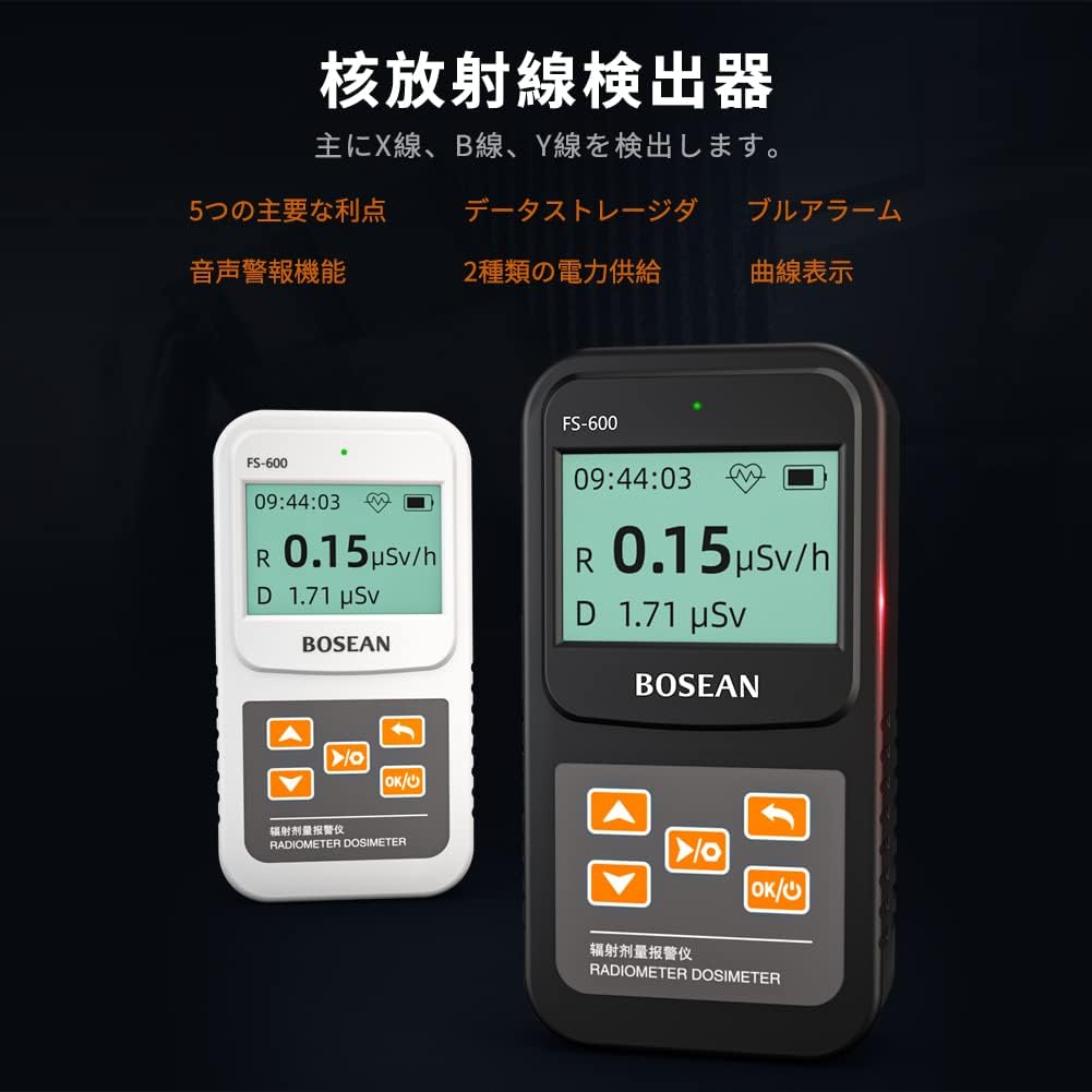 BOSEAN 放射線測定器 水質放射線検出器 核廃水検出器 核放射線検出器 X線・β線・γ線 放射能空間線量計 ポータブル Type-c給電(蓄電不可)&AAA電池給電 英語ユーザーマニュアル(ホワイト)
