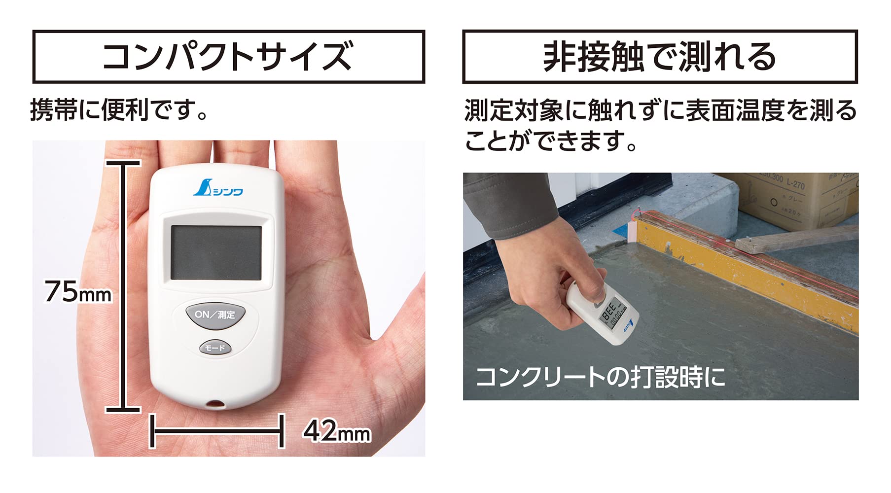 測定対象に触れずに表面温度をはかることができます。