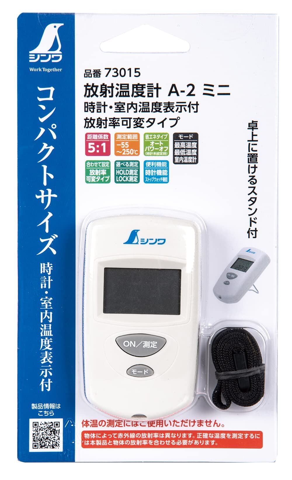 シンワ測定(Shinwa Sokutei) 放射温度計 A-2 ミニ 時計・室内温度表示付 放射率可変タイプ 73015