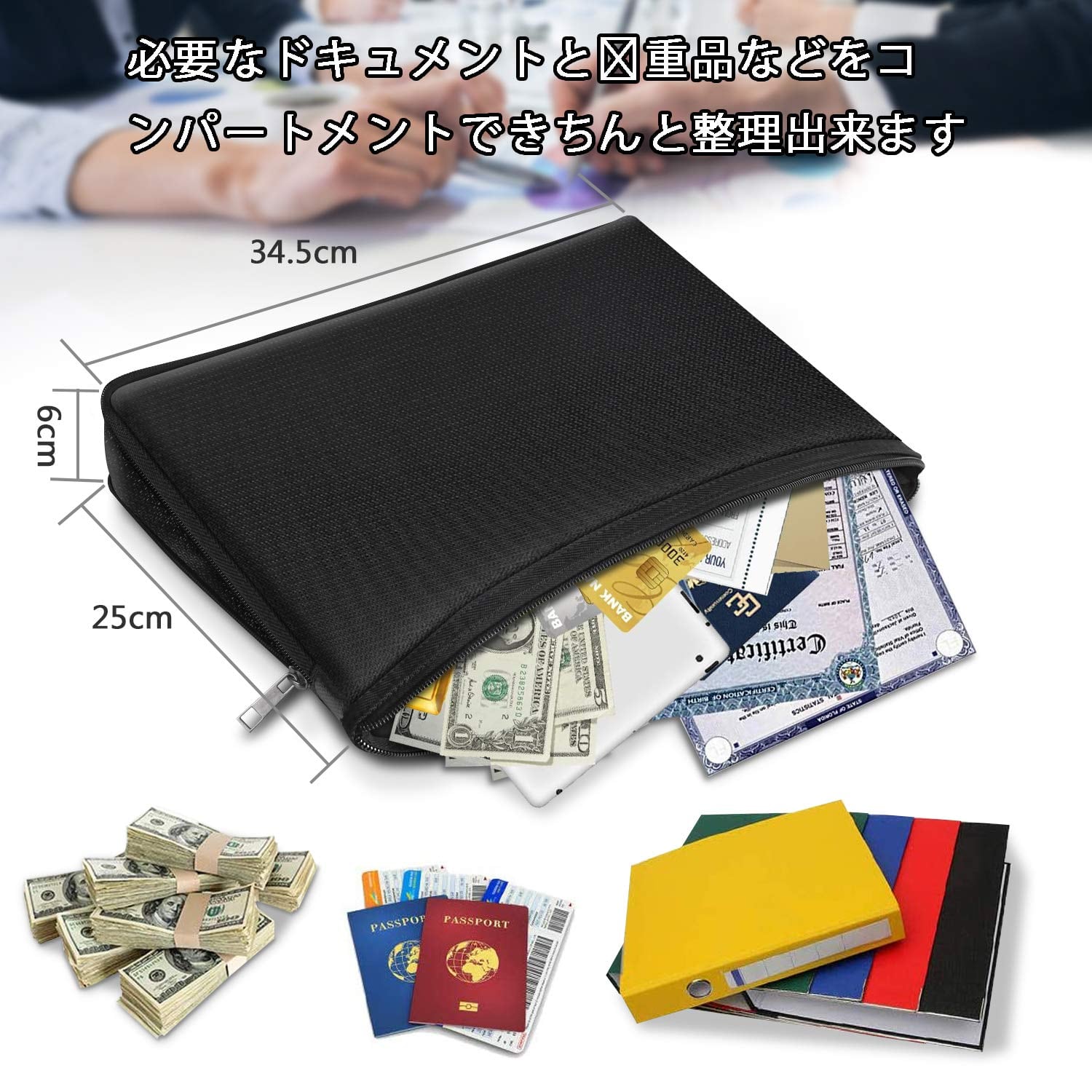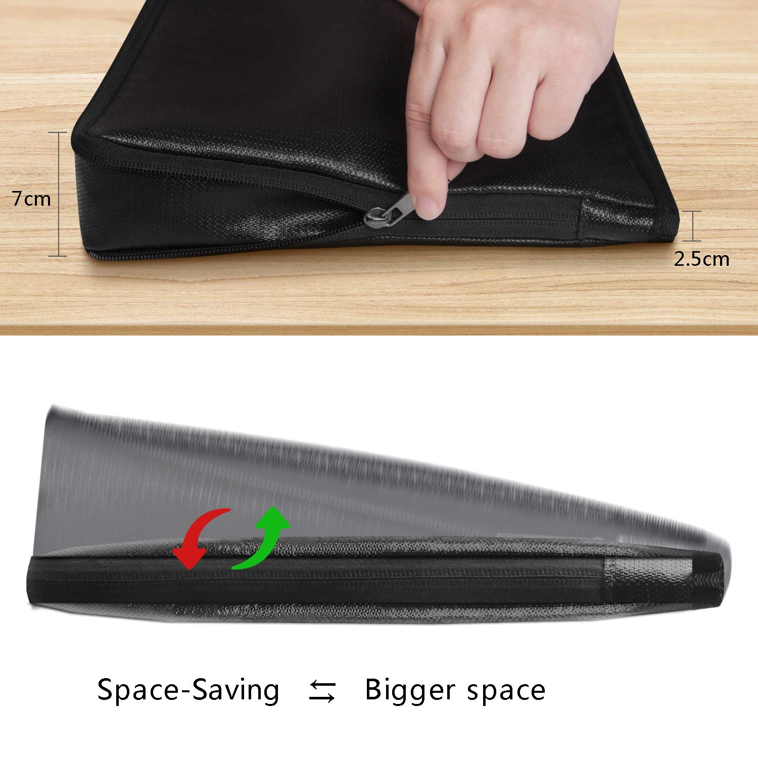 【☆ 最新開発ファスナーで圧縮技術】 金庫 家庭用 耐火 耐水 折りたたみ可能および拡張可能,オリジナルサイズ:35*25*2CM;拡張サイズ:35*25*6CM。サイドファスナーを使って容量を広げることができます。より大きなスペースでパスポート、ライセンス、USBディスク、オフィスファイル、現金、手紙、貴重な写真、結婚証、お金をよりよく保存して分類できます。超便利圧縮バッグは最新開発されたファスナーを閉めるだけで簡単に圧縮するが実現。ジッパーを閉めでスーツケース内のスペースを節約することができます