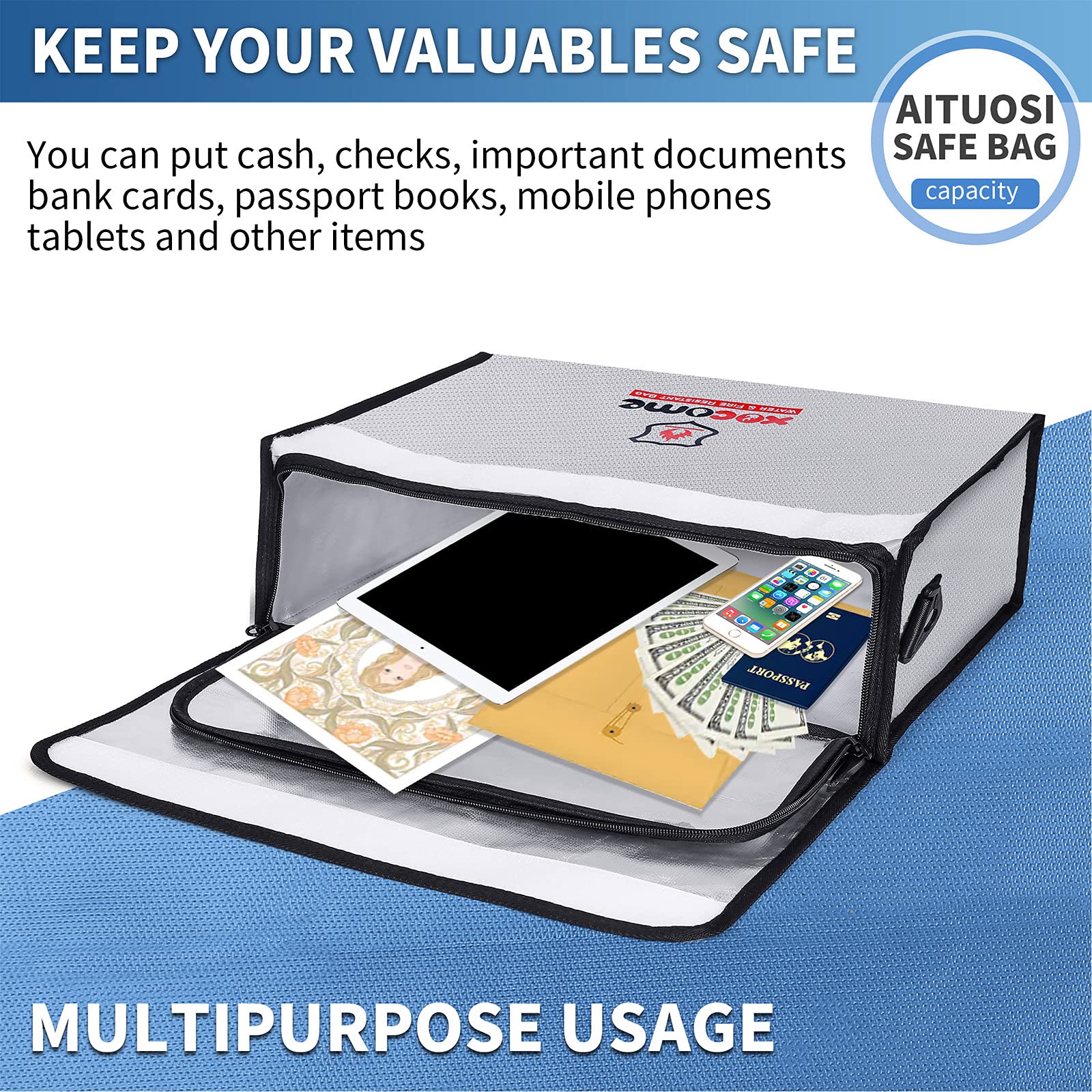 ☆【持ち運び便利】:耐火バッグは、自由に折りたたむことができ、収納しやすく、破損しにくいです。ショルダー ストラップを利用することで携帯用の耐火金庫としても使用可能です。耐火バッグは金庫との組み合わせに最適で、二重の保護効果を発揮することができます。重大な火災が発生した場合、避難時には簡単に持ち出しができます。