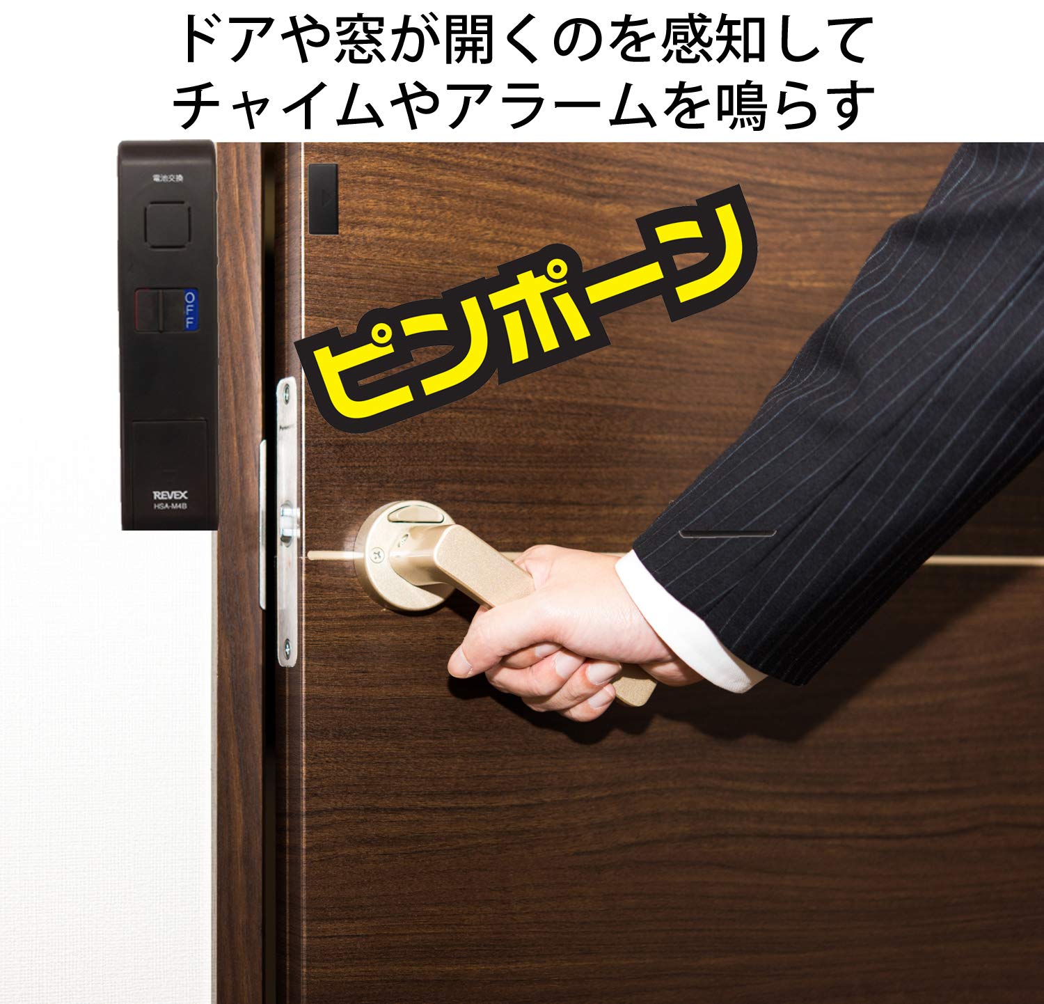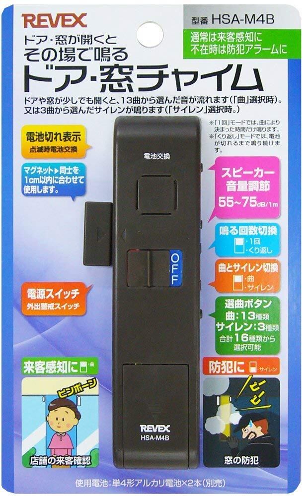 リーベックス(Revex) チャイム ドア 窓用 窓ドア開閉センサー アラーム 選べる16種類の音・音量調整 防犯 ブラウン HSA-M4B
