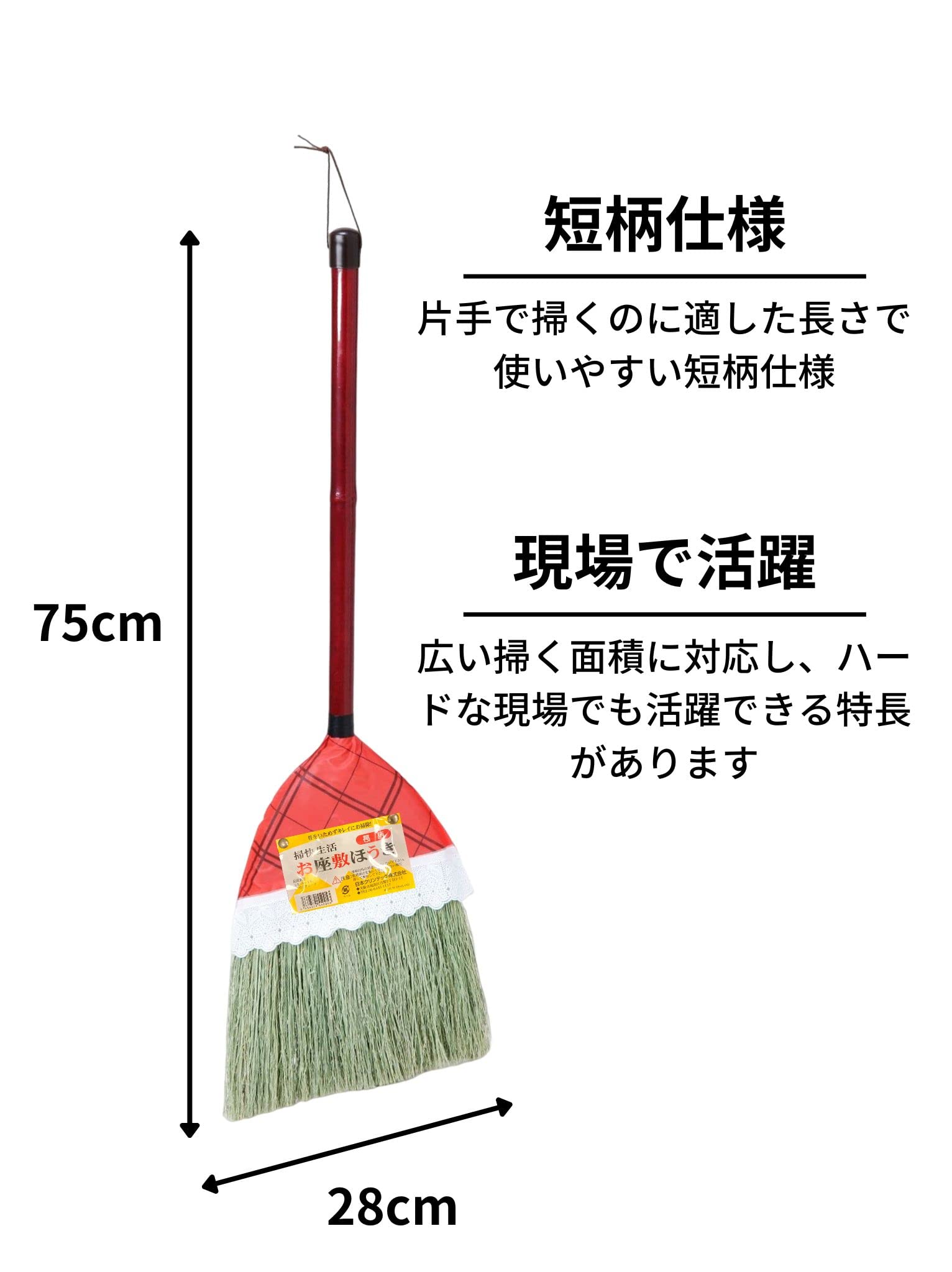日本クリンテック(Nihon Clean tech) 座敷ほうき短柄 カバータイプ 幅28cm 全長75cm 屋内外 天然繊維 手に馴染む 床面に優しい ホコリから粗ごみの掃除
