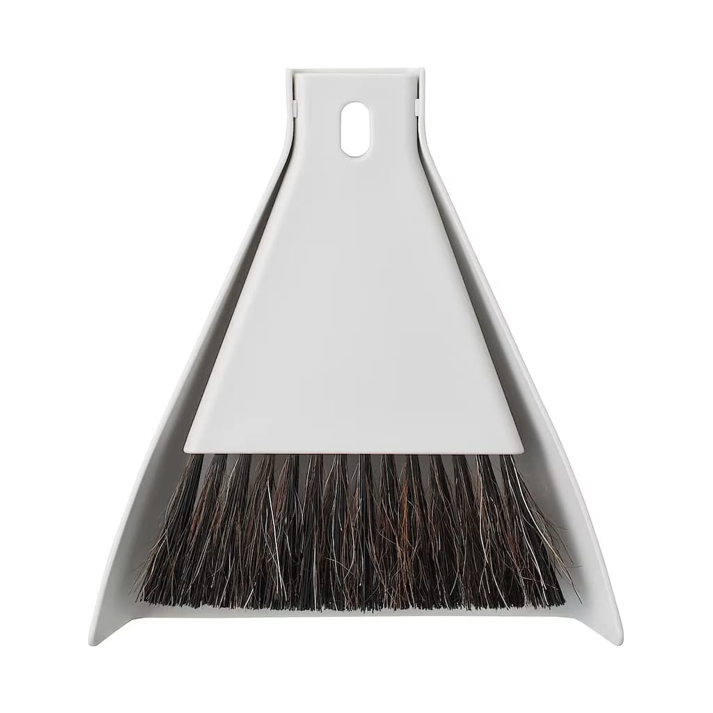 卓上に置くのにちょうど良いコンパクトサイズのほうきと自立型ちりとりのセットです。