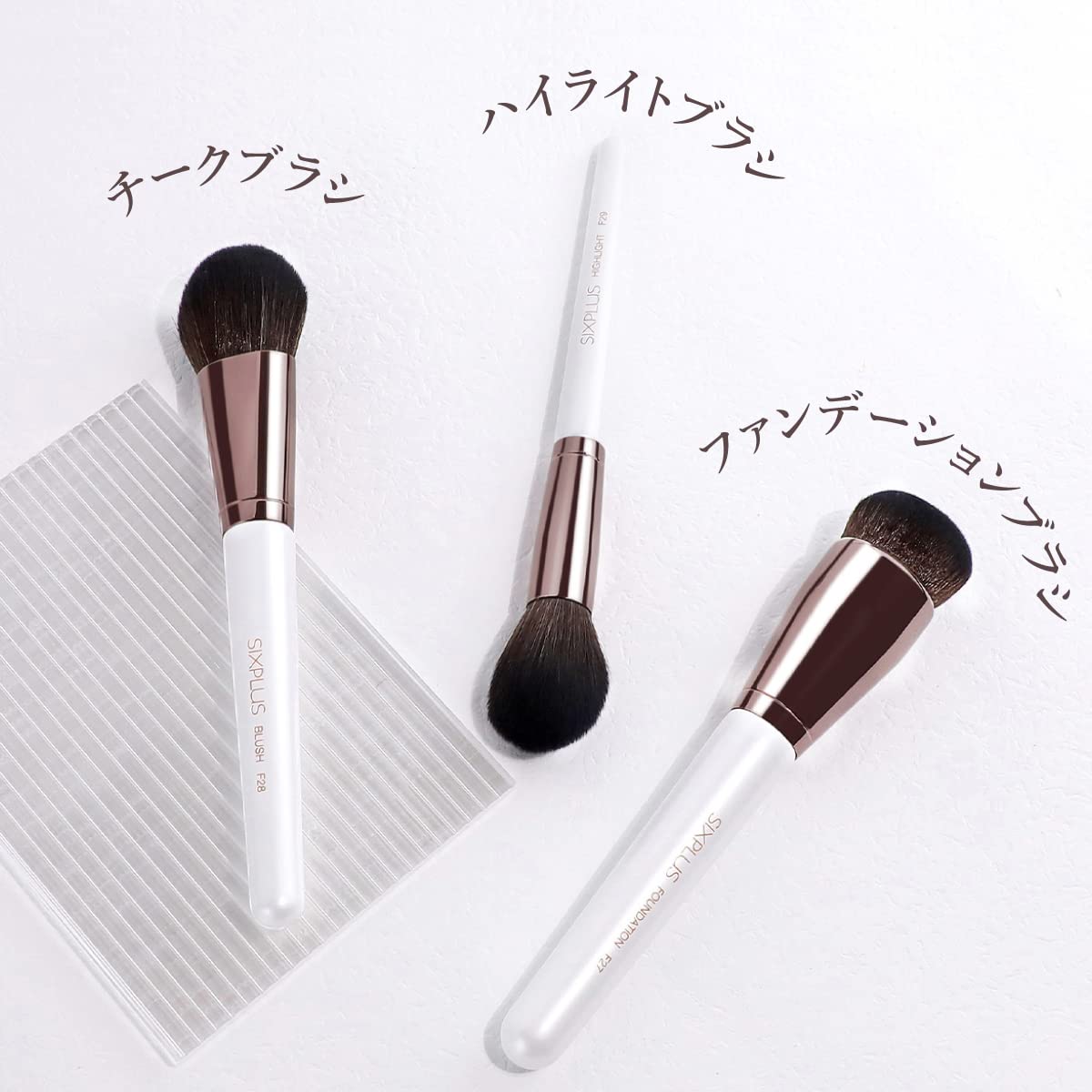 SIXPLUS ホワイトパール フェイスメイクブラシ 3本セット