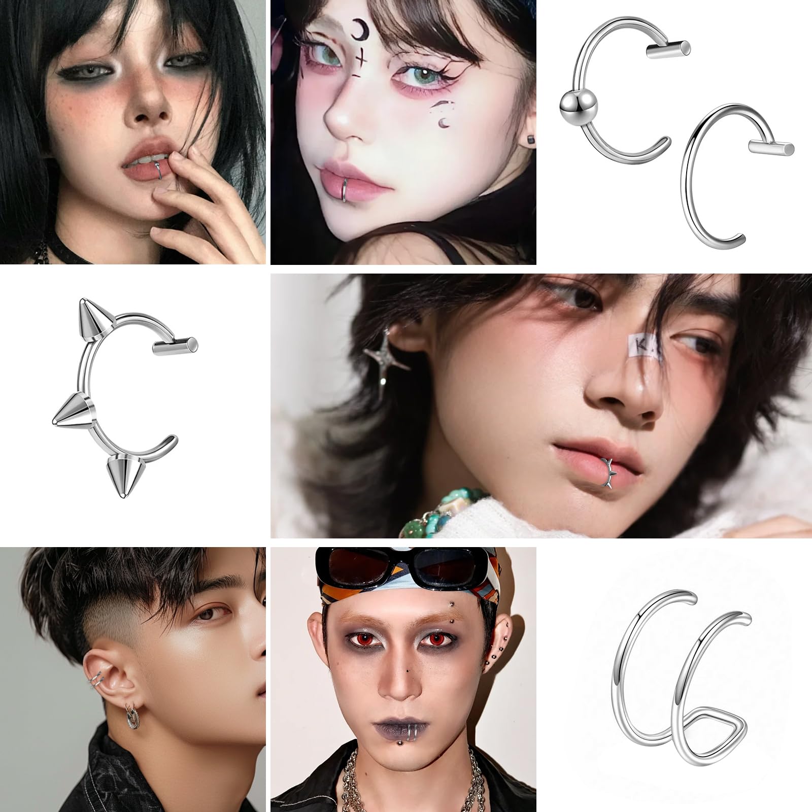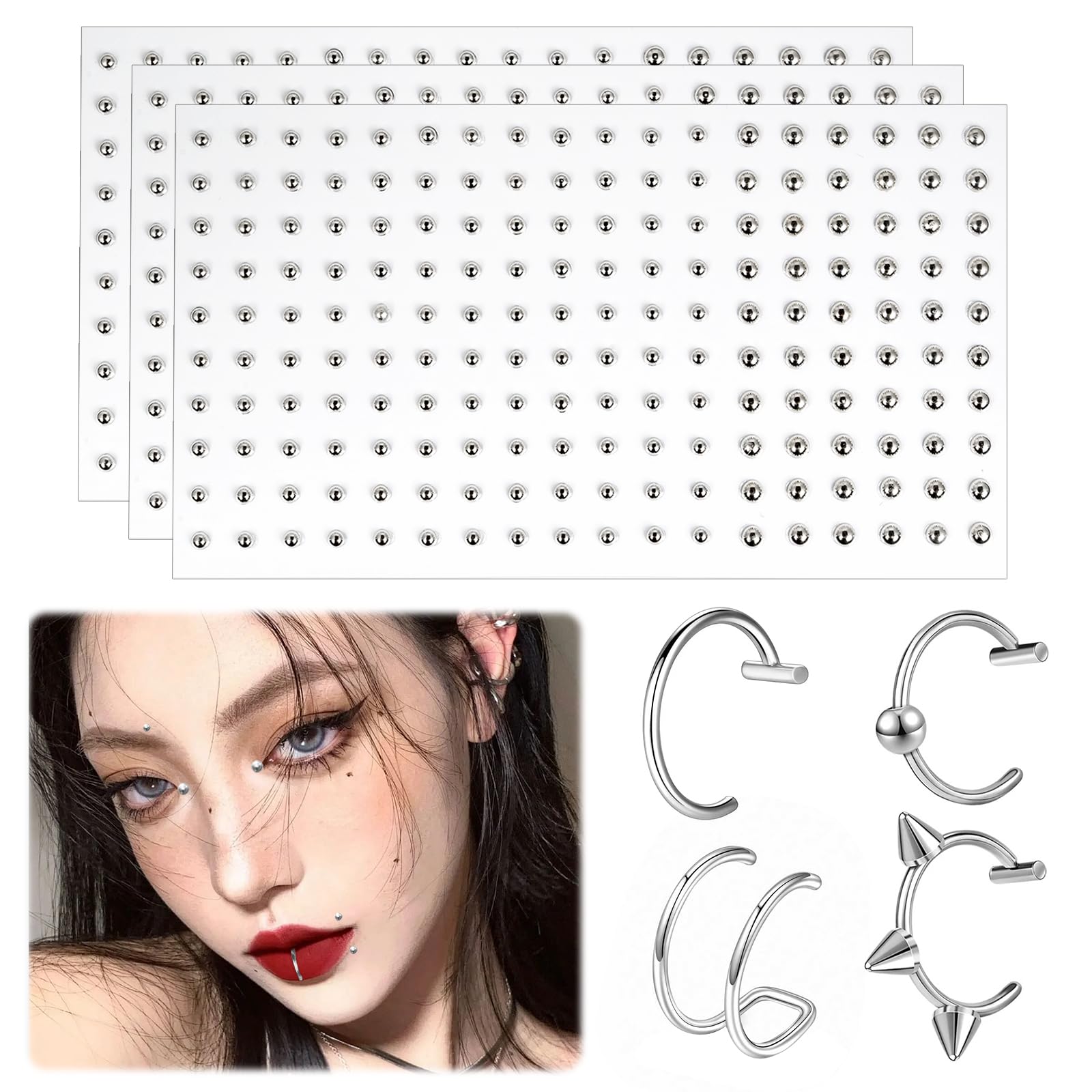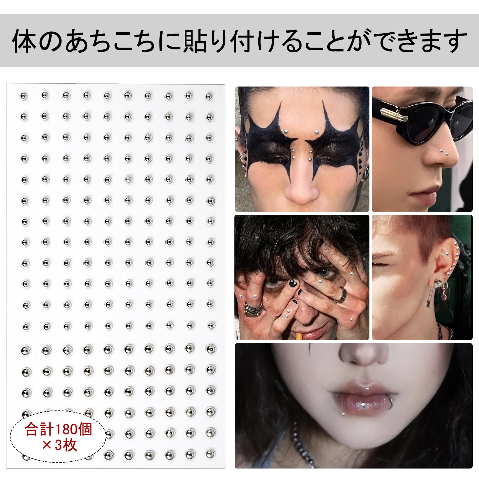 [Fantasyon] 貼るフェイクピアス シールタイプ 鼻 唇 眉毛用 簡単装着で持久性 地雷系 ゴシック風 日常からパーティーまで 男女兼用