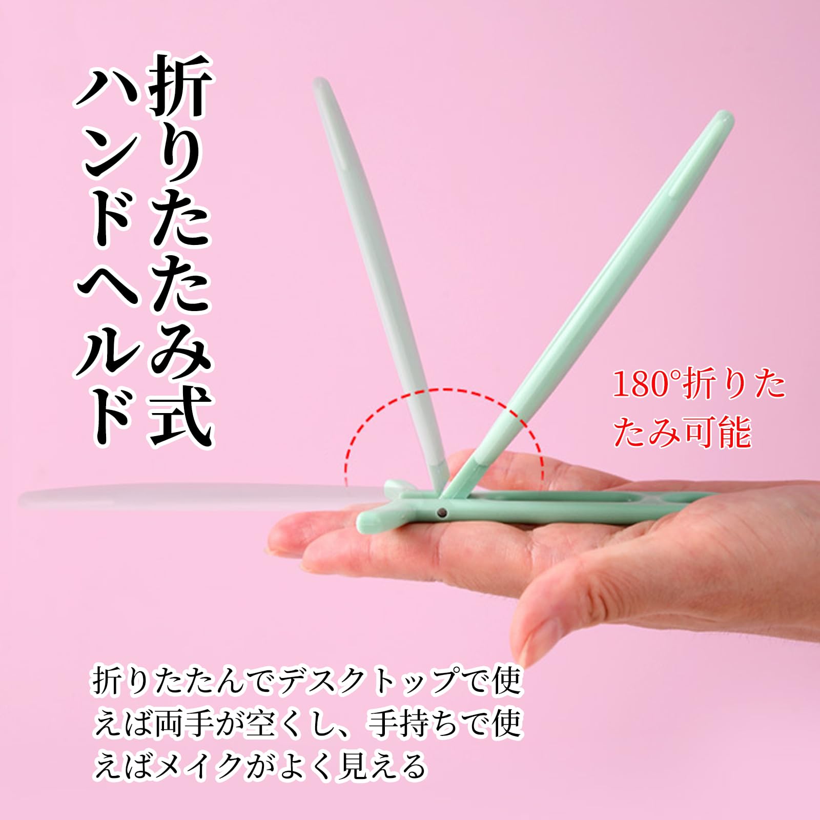 【手持ち型化粧鏡】折りたたみ式で、出し入れや出し入れがしやすいだけでなく、角度を調節して日常的に使いやすく、机の上でしっかり立つことができます。