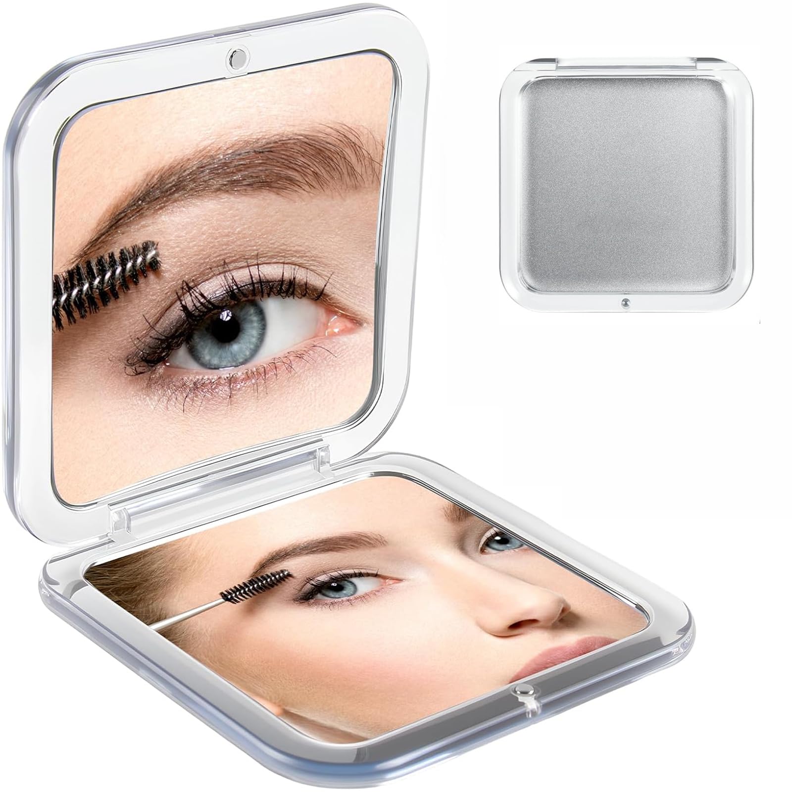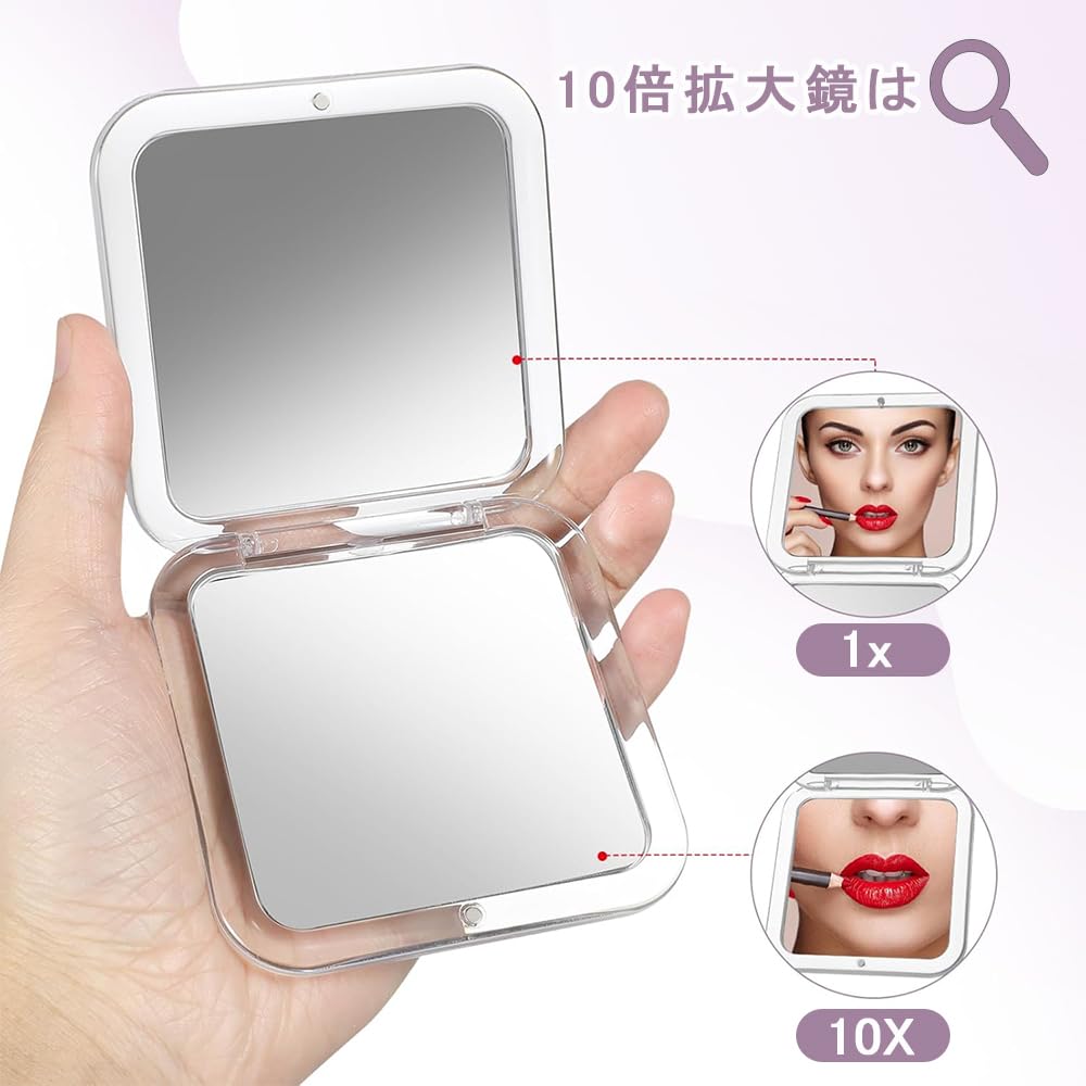 コンパクトミラー 両面化粧鏡 10倍 拡大鏡 手鏡 折りたたみ鏡 角度調整可 持ち運び便利 円形 (方形)