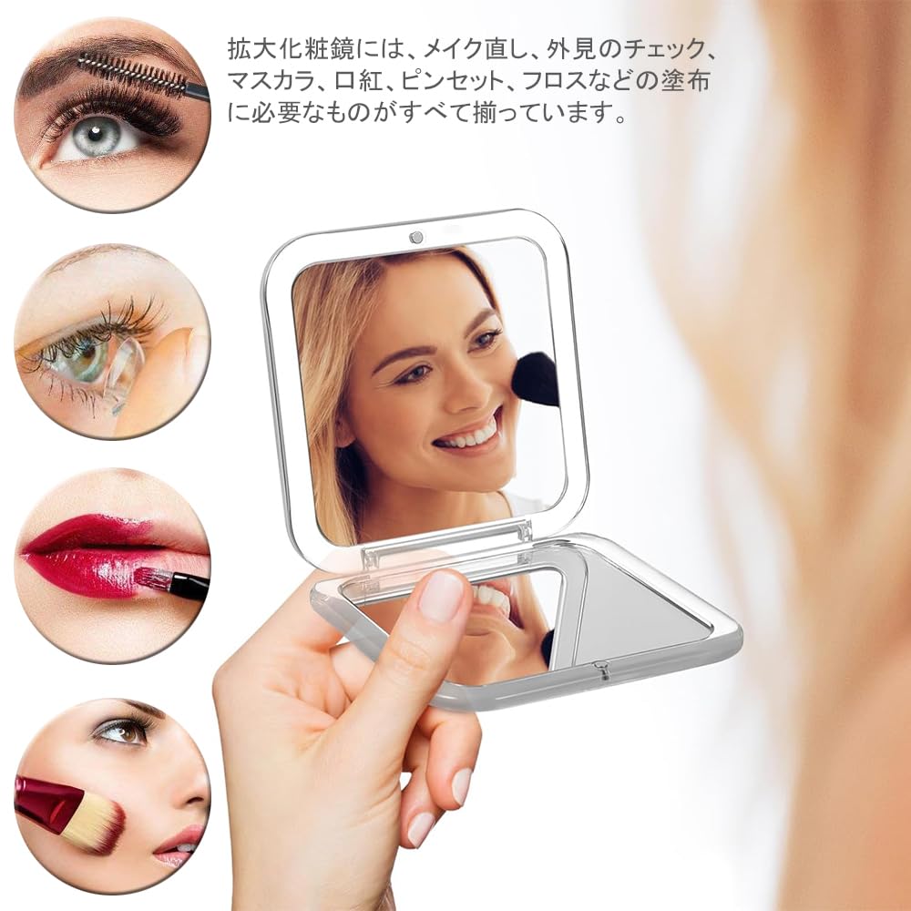 【幅広い用途】そのコンパクトで持ち運びしやすいデザインです。手のひらサイズで軽量で、持ち運びやすく、化粧ポーチに入れたり持ち歩いたりするのに適しており、いつでもどこでもメイクの修正やディテールチェックができます。