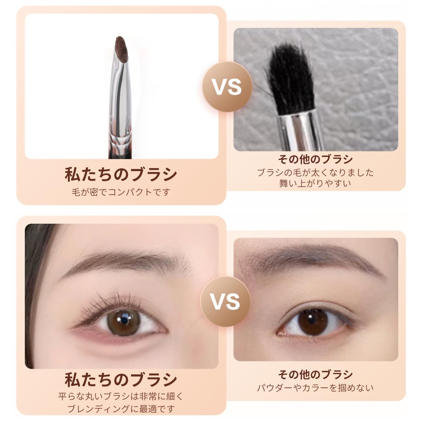 ブラシの先端は厳選された馬毛で、滑らかで繊細なタッチ、柔らかくて弾力性があり、毛が密集してコンパクトで、アイシャドウパウダーをしっかりと保持することができ、ブラシの先端は色の範囲を制御するのに十分小さく、にじみ効果は非常に自然で、メイク初心者も簡単に使用することができます。