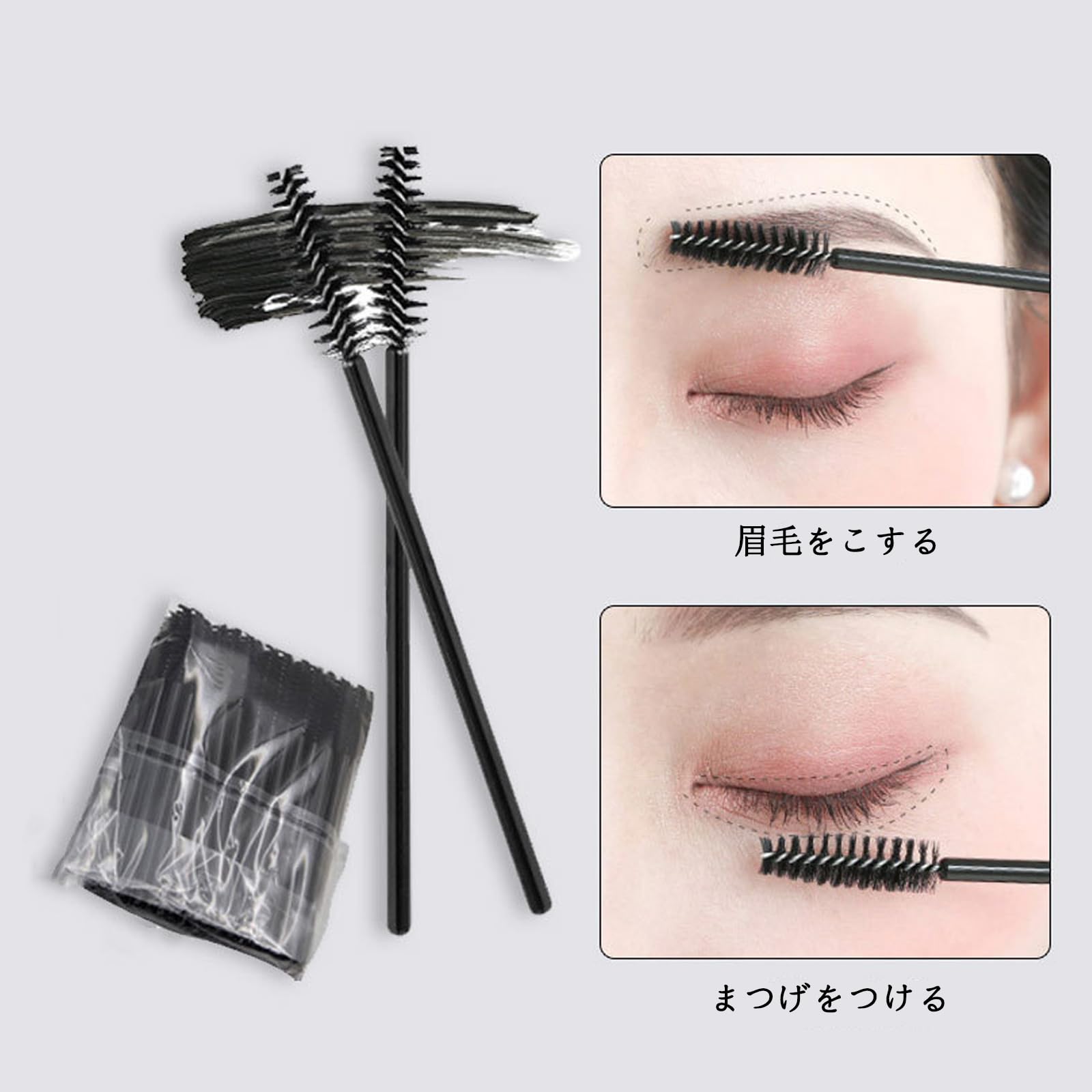 YINKE まつげ 眉毛ケアに 100本入り 使い捨て スクリューブラシ メイクブラシ アイブロウブラシ 眉毛コーム 化粧用品 黒 衛生的 携帯便利