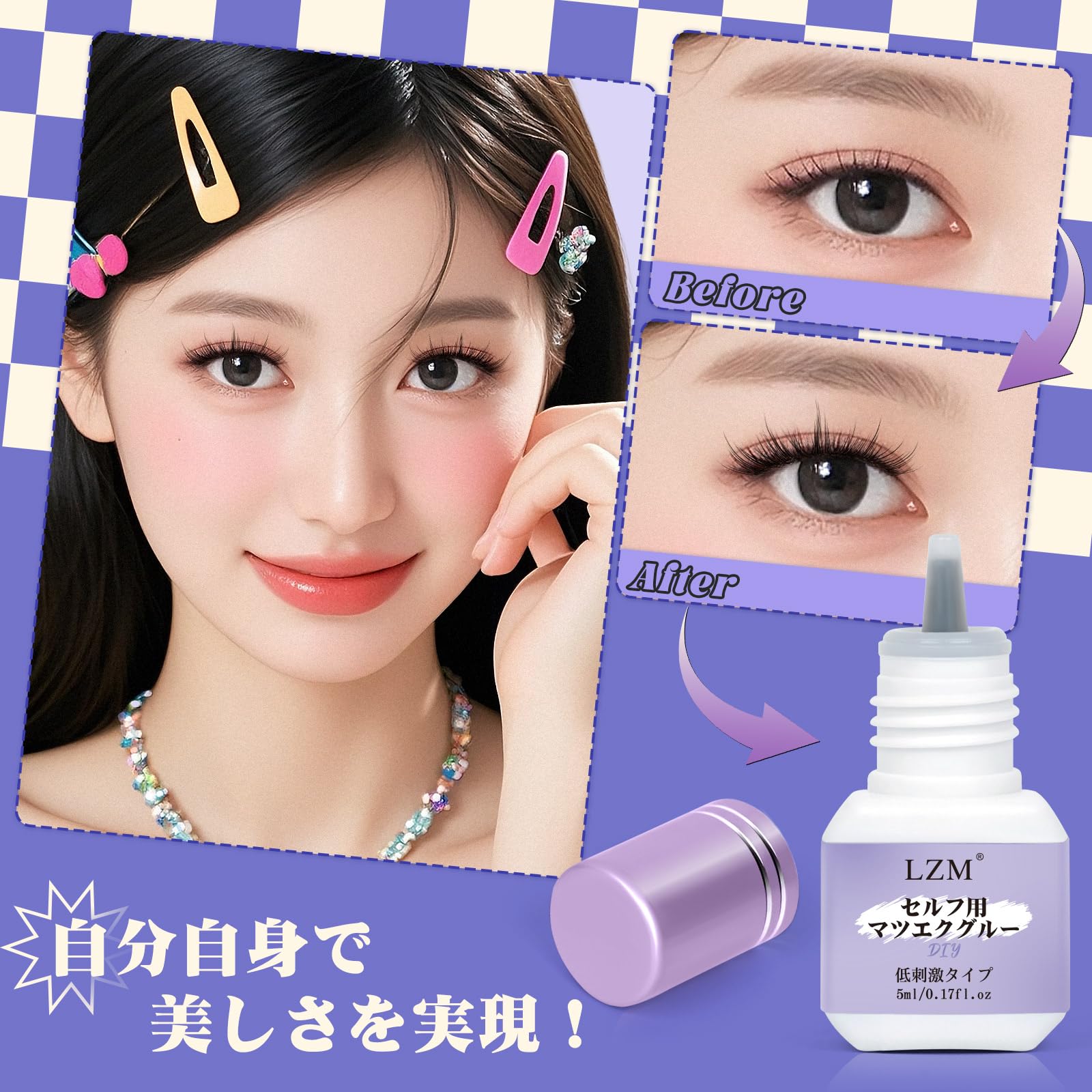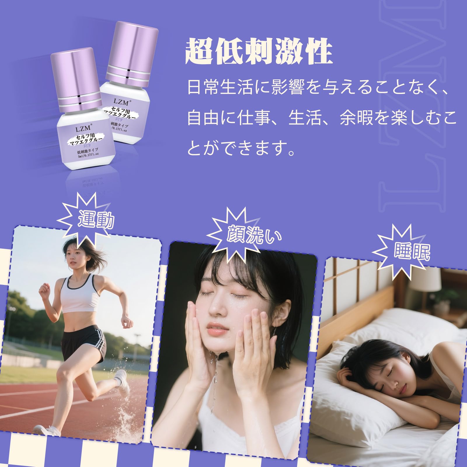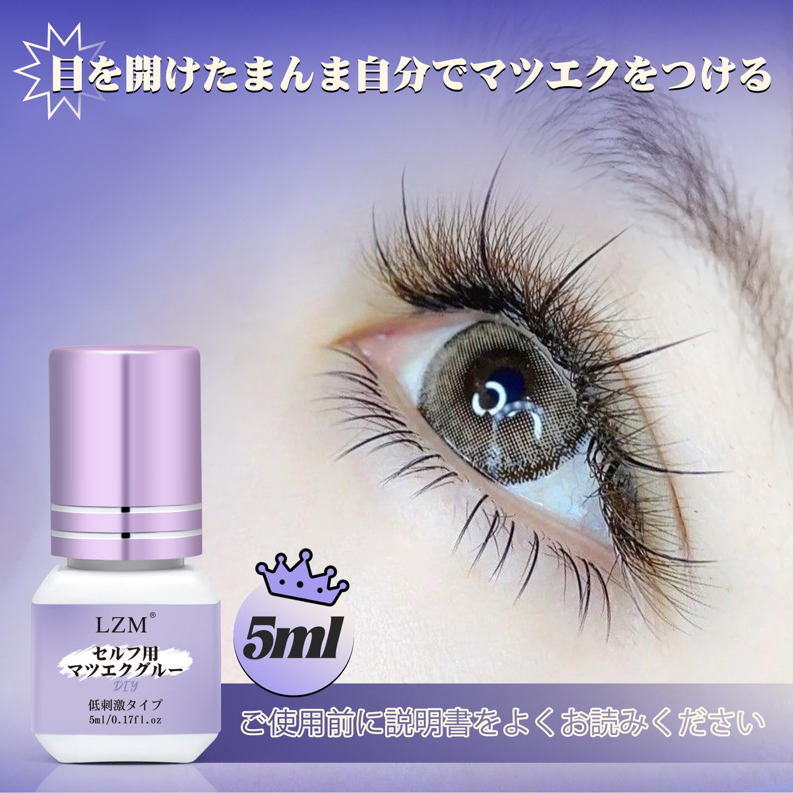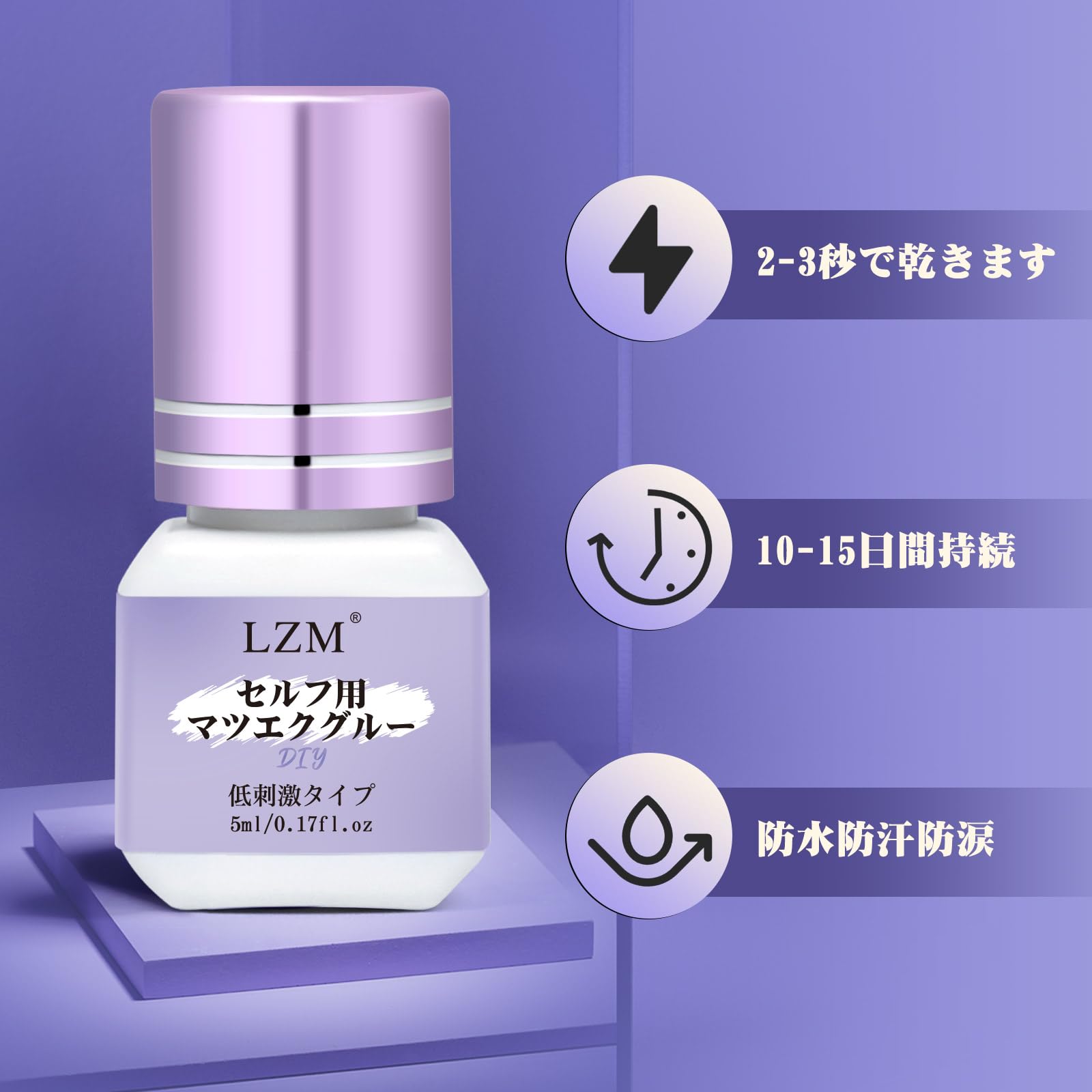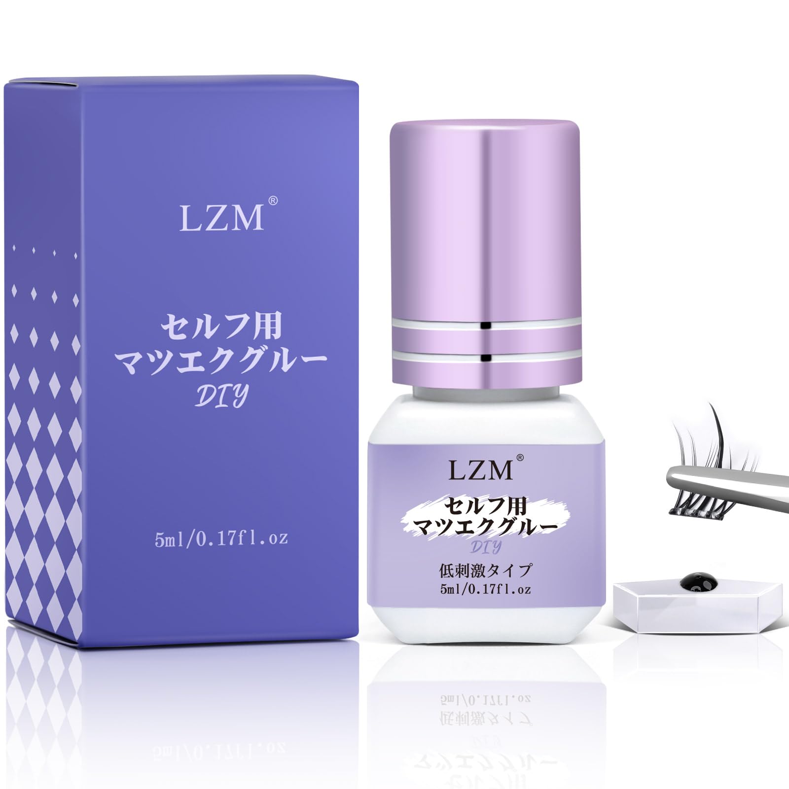 LZM マツエクグルー セルフ用 超低刺激 セルフマツエク 乾燥時間3秒 強力 無香料 初心者向け 防水防汗 5ml 沁みない 黒