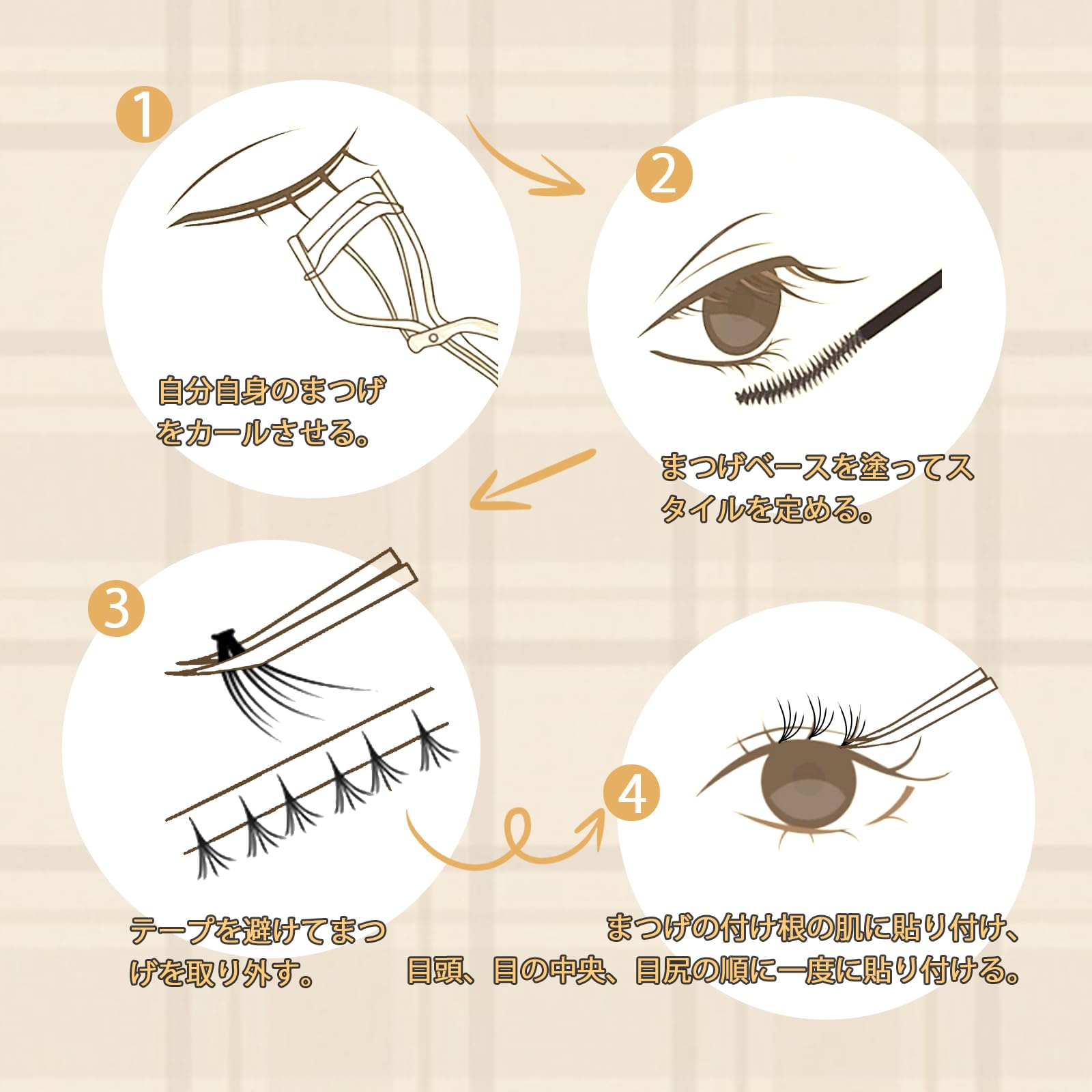【ノリ不要!すぐピタまつ毛】このまつげ用のフェイクまつげは、根元に接着テープが付いているので、別途まつげ用の接着剤を使う必要はありません。忙しい朝やイベント時でも時間を節約できます。