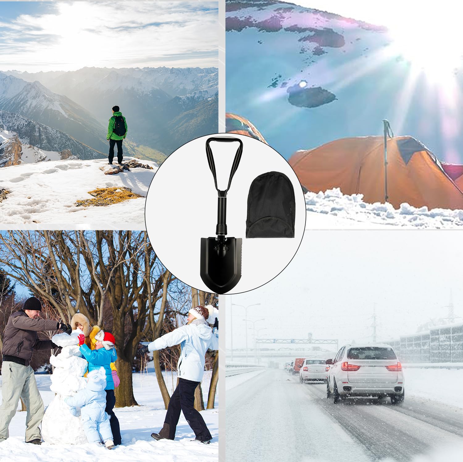 キャンピングシャベル58cm,スコップ 雪かき, 50#高炭素鋼埋め込み工具, シャベル 多機能シャベル ミニ 折りたたみ式 収納バッグ付き 7機能 登山 キャンプ アウトドア 雪かき 冒険 防災 (black)