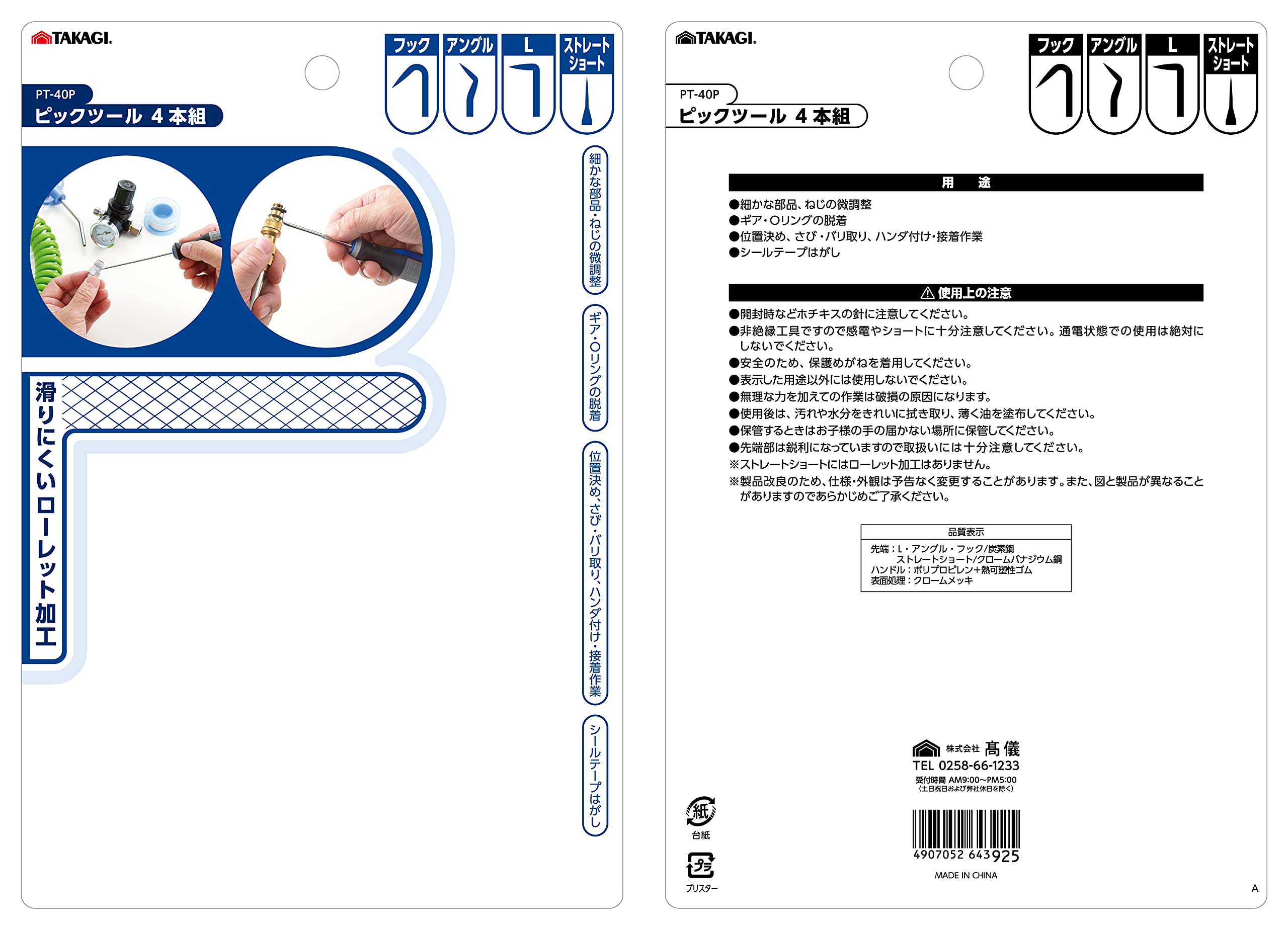 高儀(Takagi) ピックツール 4本組 PT-40P (× 5)
