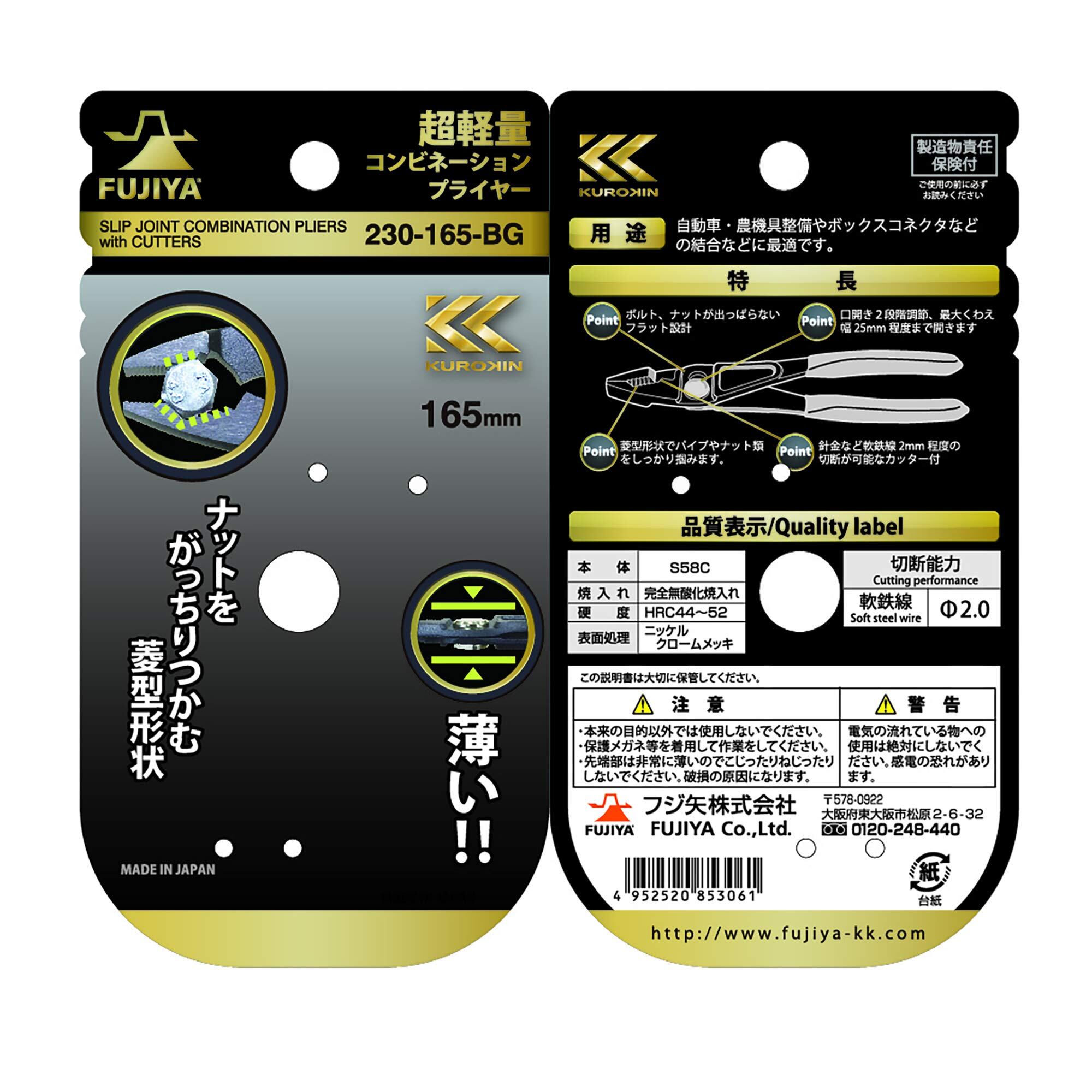 フジ矢(Fujiya) 超軽量コンビネーションプライヤー 黒金 230-165-BG