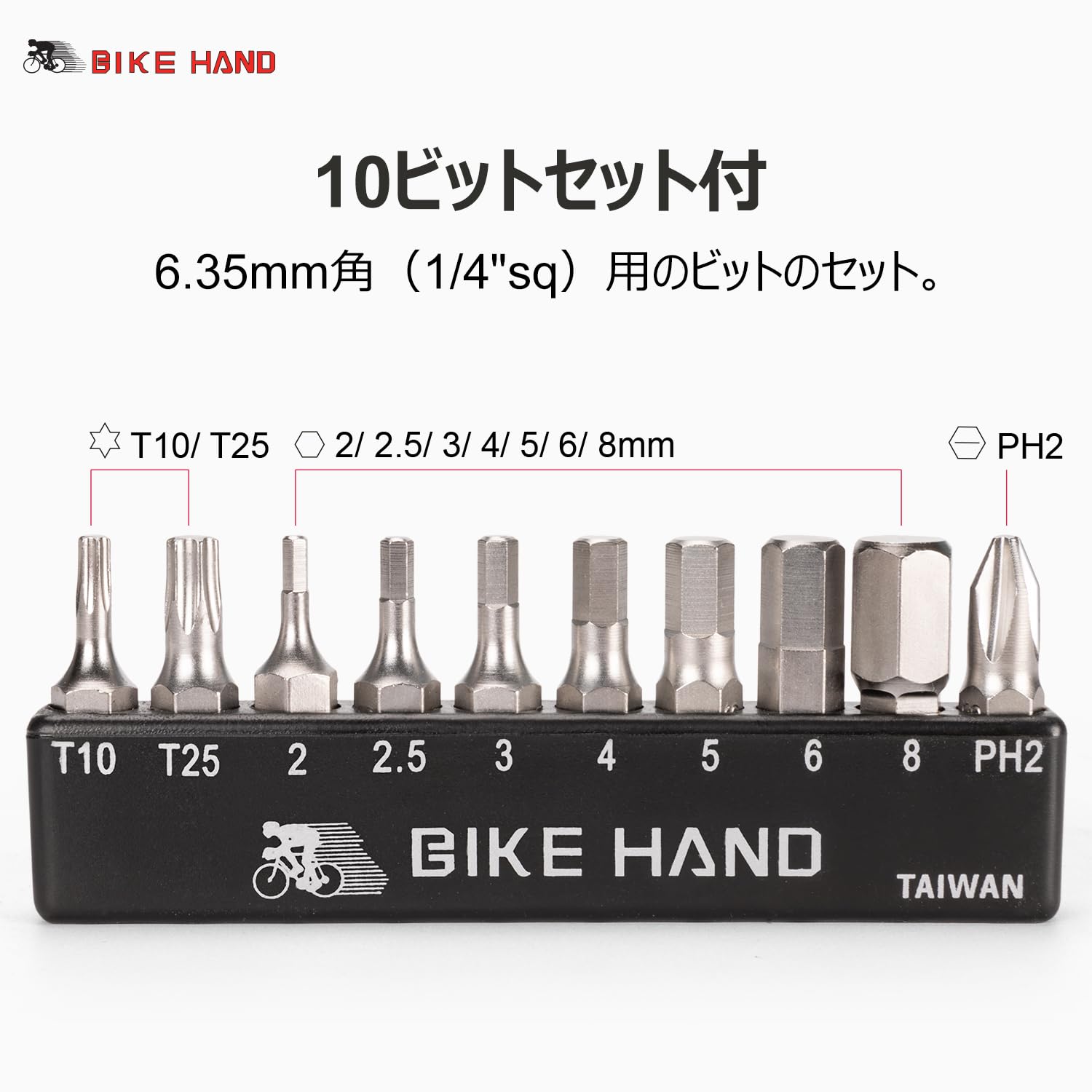 BIKE HAND 自転車 トルクレンチセット 差込角1/4インチ(6.35mm) ビット付き 台湾製
