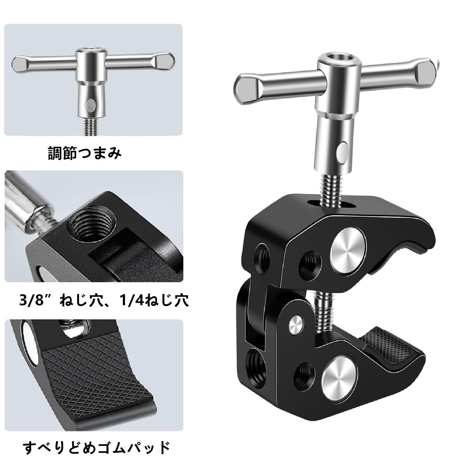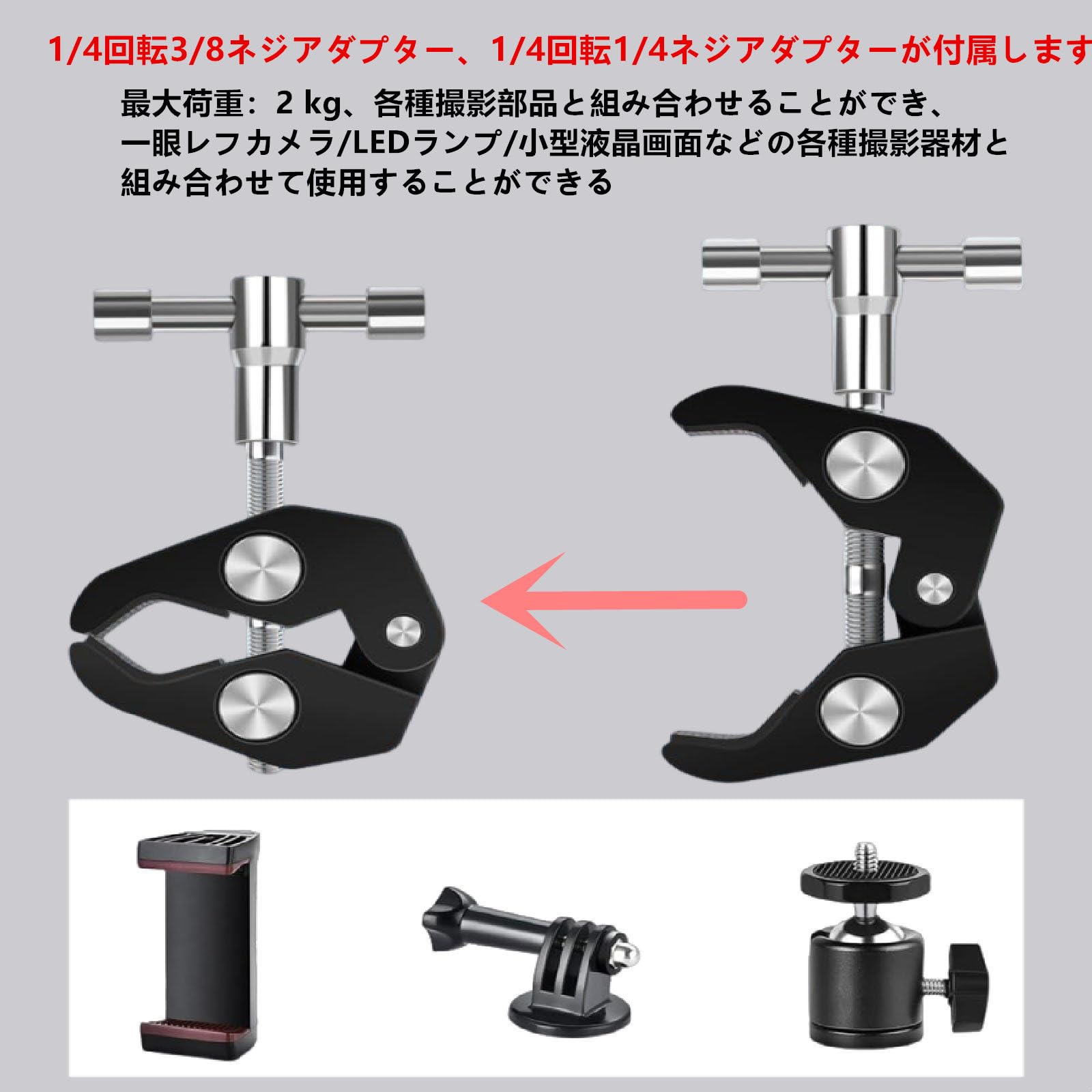 【数量限】クランプ 金具 蟹バサミクランプ 2個セット 15-40mm スーパークランプ パイプクランプ 1/4インチネジ穴と 3/8インチネジ穴 多用途クランプマウント 雲台 に対応 カメラ クランプ 固定金具 | GIGATERA