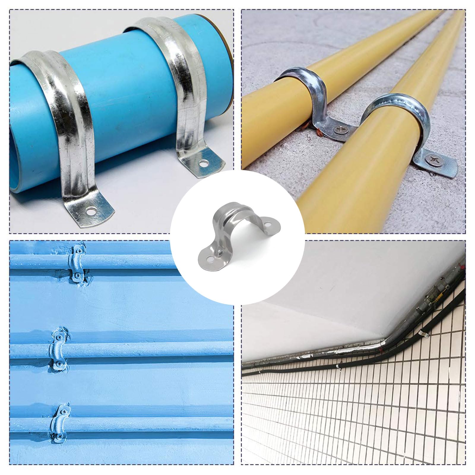 ステンレスサドルバンド単管パイプ サドルバンド たんかんパイプ固定金具 単管パイプ 性パイプストラップクランプ ステンレス製 2つ 穴があるU字型 様々な表面へのパイプ固定用、20個セット (50MM(20))