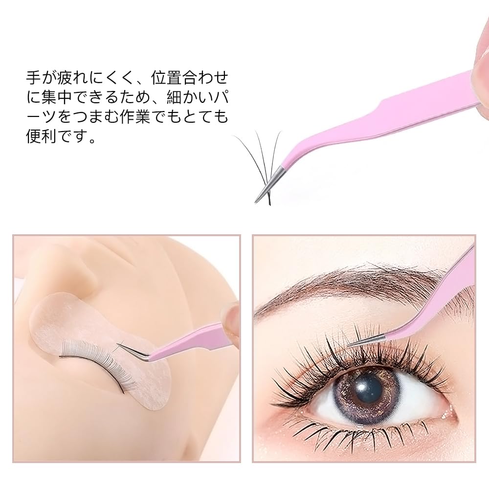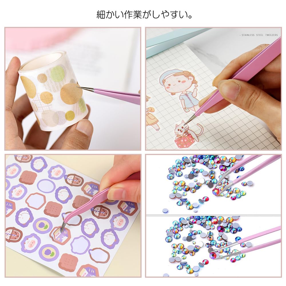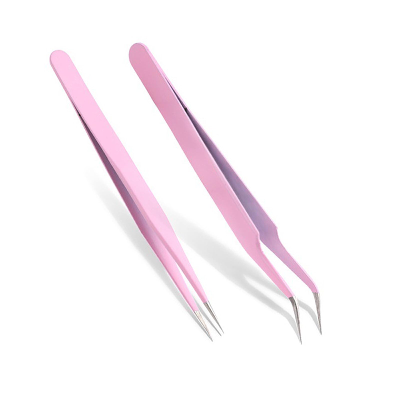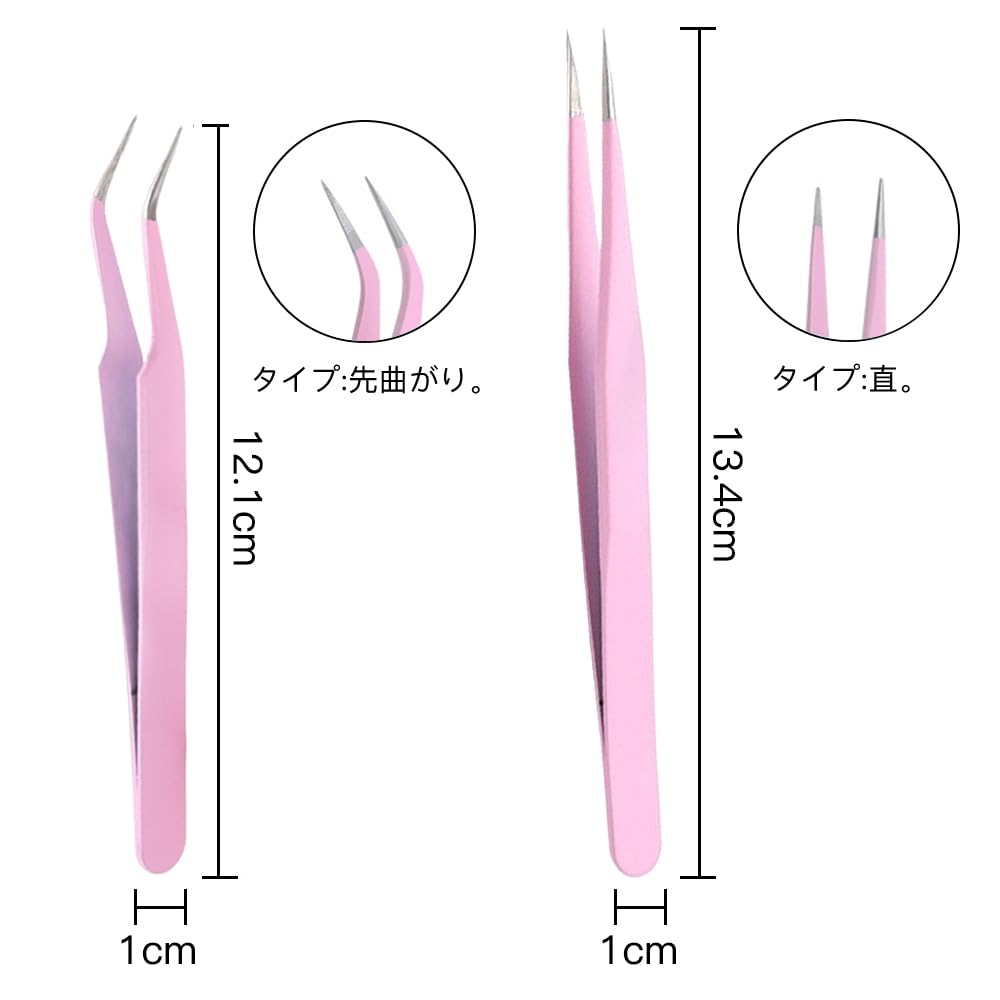 2種類セット ピンセット 精密 キャップ付き ステンレス 先曲がり ストレート 細かい毛髪やまつげ つけまつ毛 クラフトに最適 (ピンク)