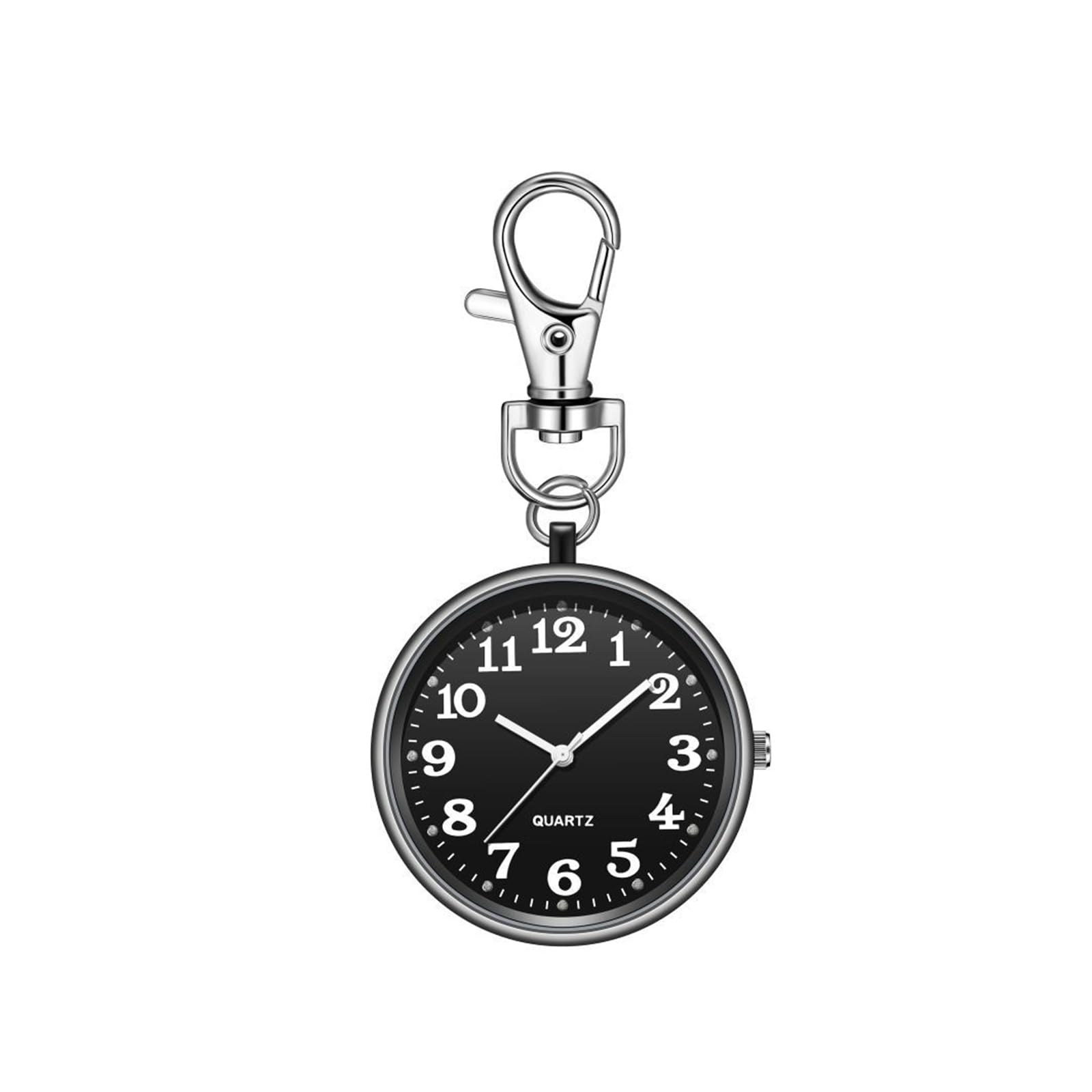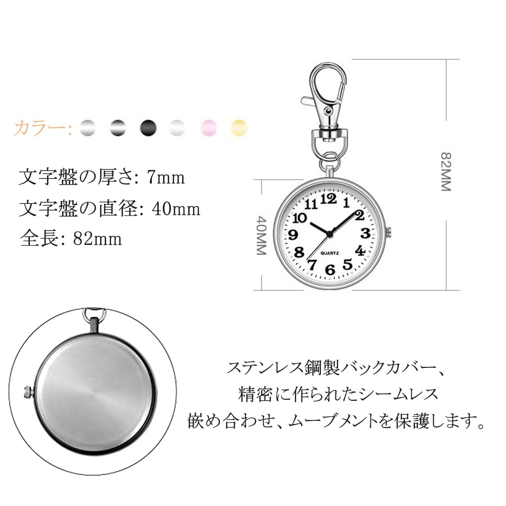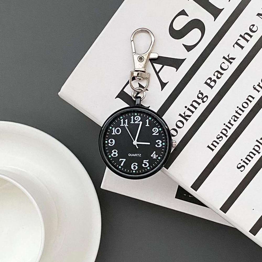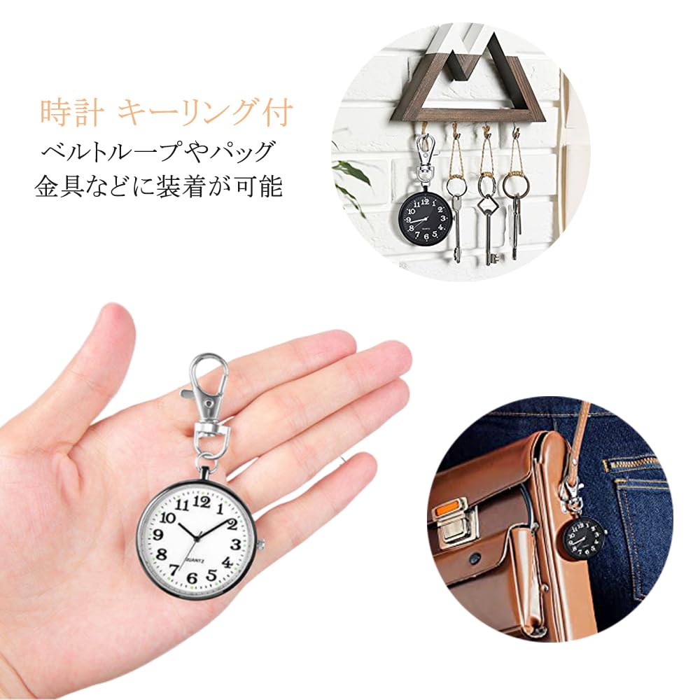 ナースウォッチ 懐中時計 小型 シンプル キーホルダー ポケットウォッチ 数字 見やすく大きい 文字盤 夜光 クオーツ 男女兼用 (ブラック)