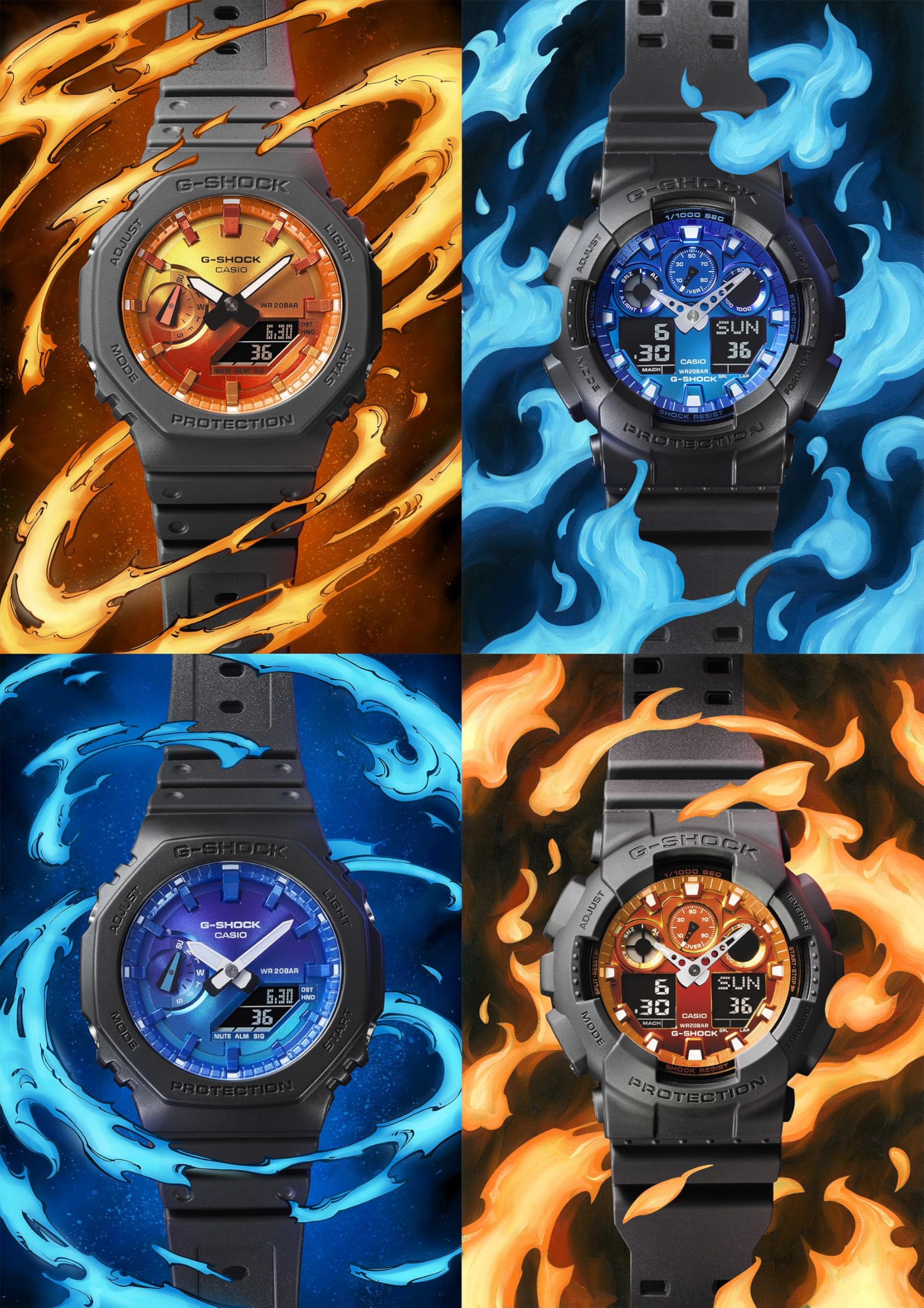 1983年の発売以来、飽くなき強さを求めて進化を続けるタフネスウオッチG-SHOCKから、G-SHOCKのブランドアイデンティティである挑戦をテーマに、胸の内で燃え る情熱の炎をイメージした、Flame insideシリーズのご紹介です。