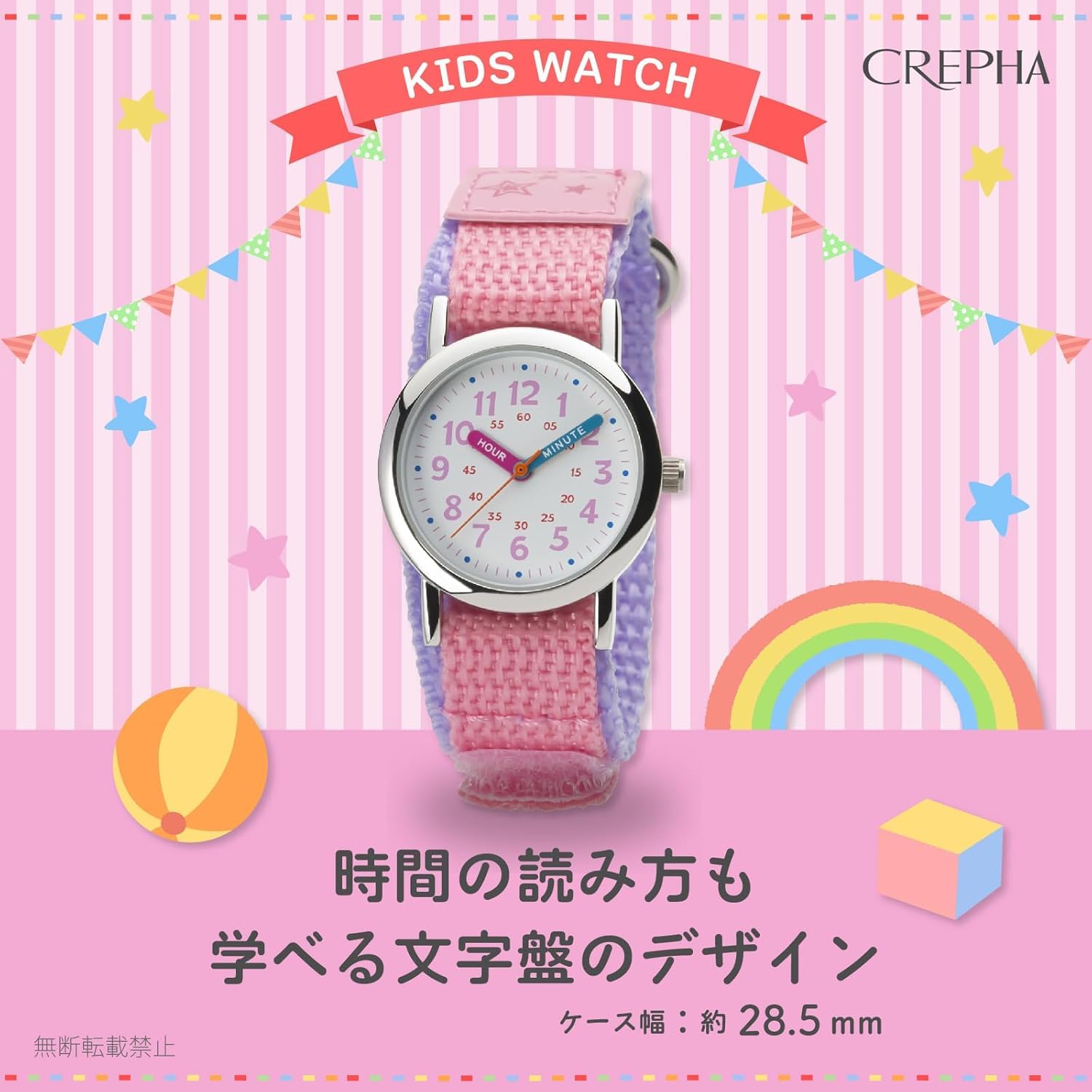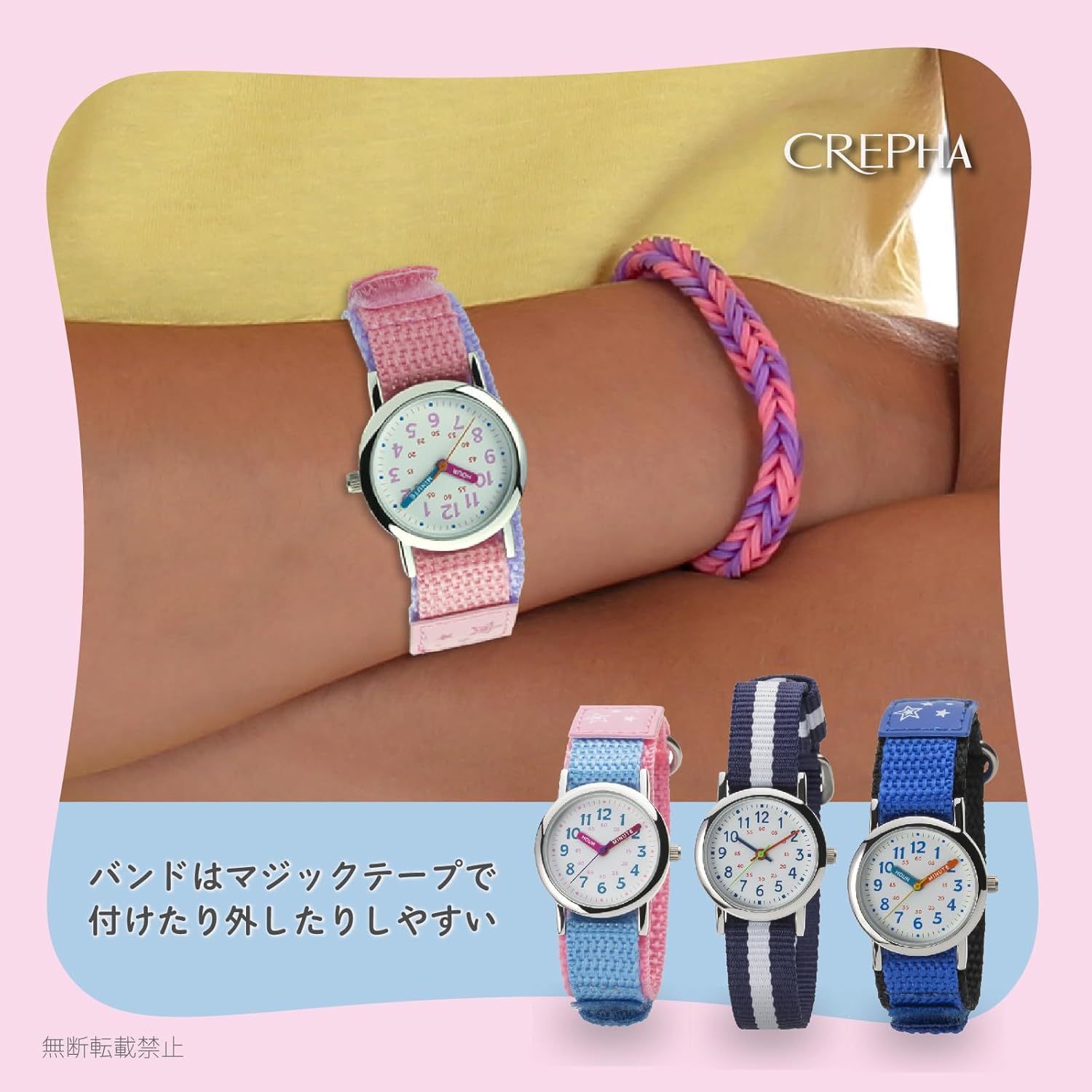 CREPHA(クレファー) 腕時計 アナログ キッズ 子供 防水 布ベルト ナイロンベルト ピンク NB-AK218-A