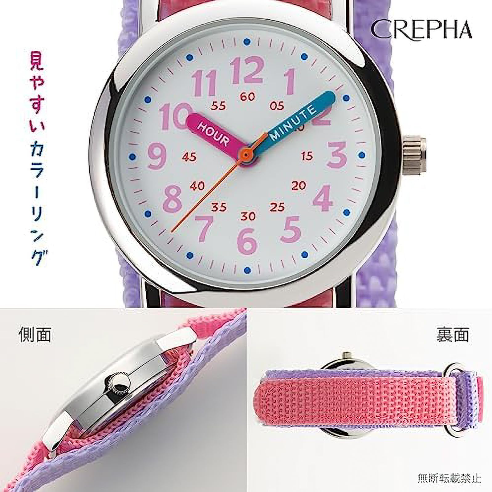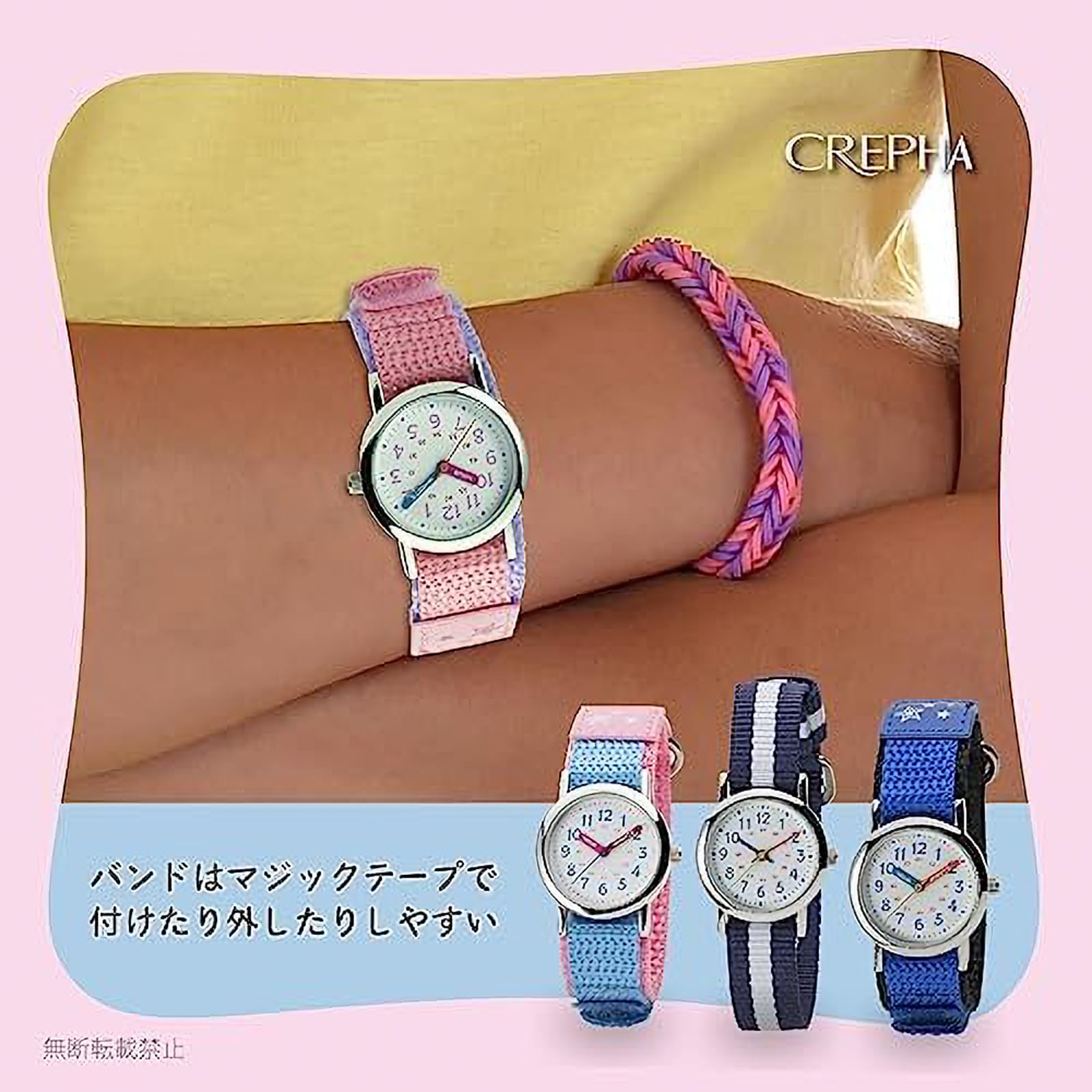 CREPHA(クレファー) 腕時計 アナログ キッズ 子供 防水 布ベルト ナイロンベルト ピンク NB-AK217-A