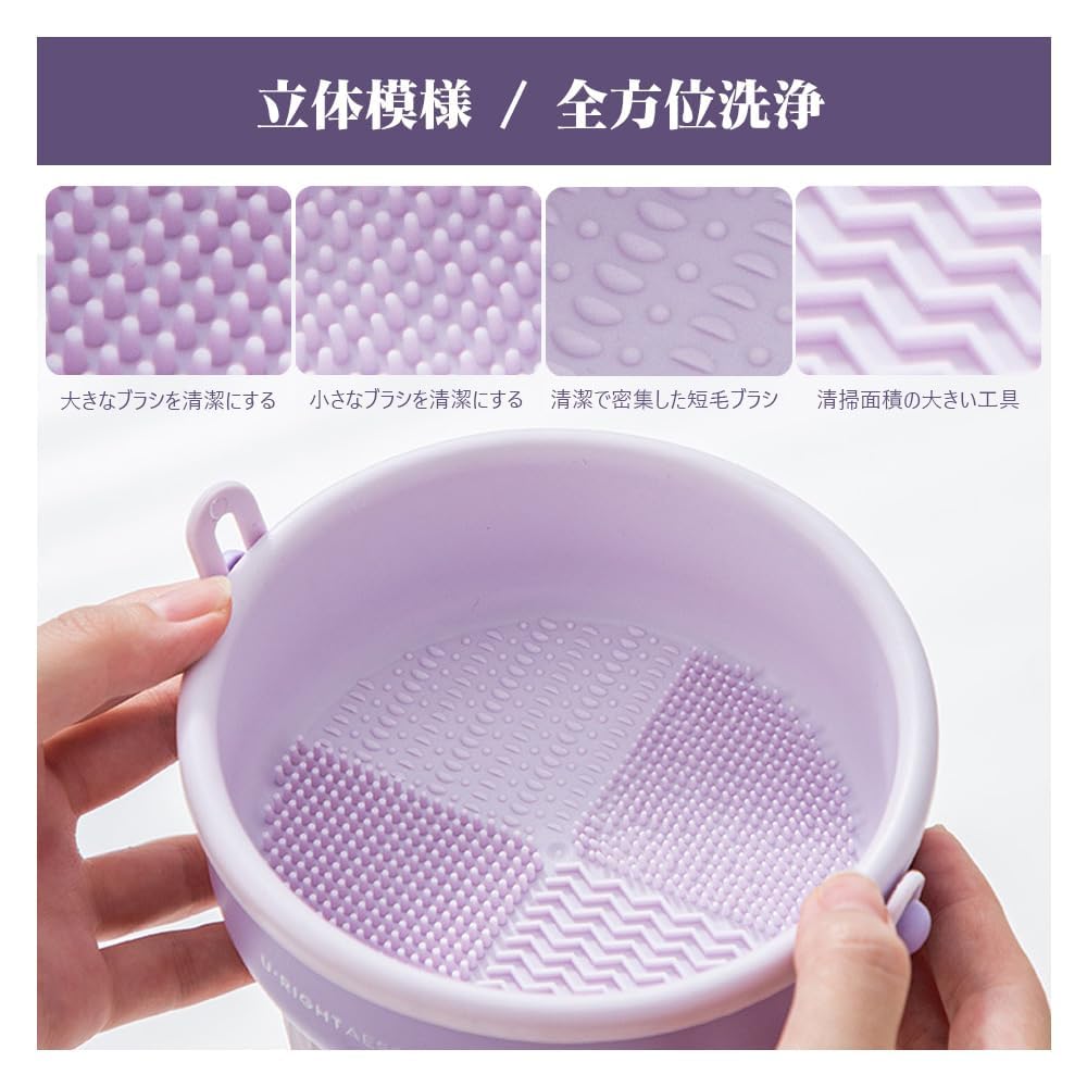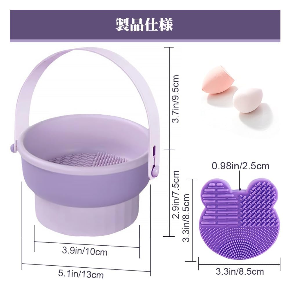 2点セット メイクブラシクリーナー 化粧ブラシ 洗浄 シリコン シリコン クリーナー 3in1 洗浄 乾燥 収納 おしゃれ ドライクリーニングスポンジ 洗浄カアップ 化粧筆洗浄(パープル)