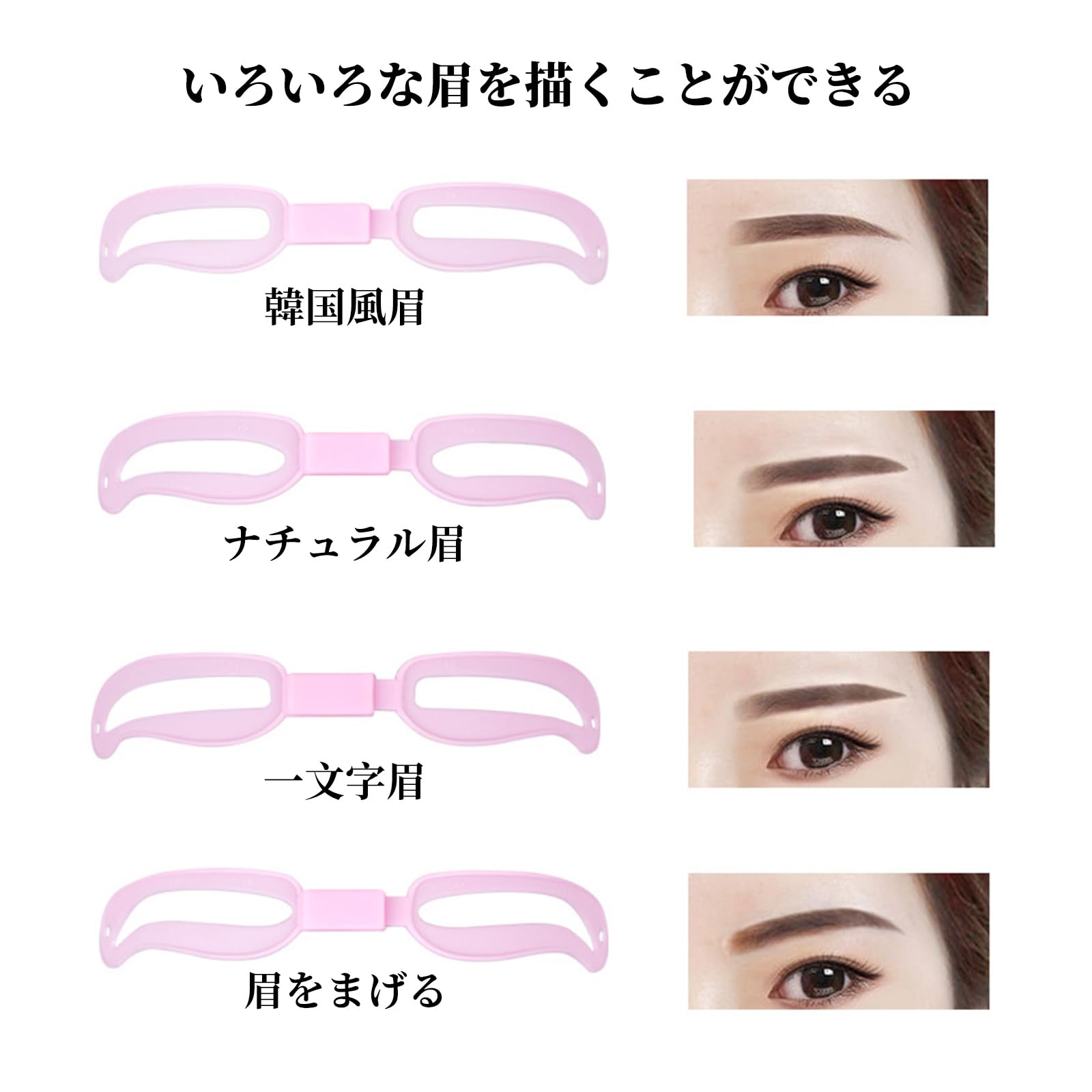 【パッケージに含まれるもの】眉テンプレートは4つの異なる眉テンプレートが含まれています。眉毛の形を選んでメイクをしたり、眉毛を整えるツールとしても使えます。眉毛がうまく描けない人や左右非対称の眉毛の人におすすめです。